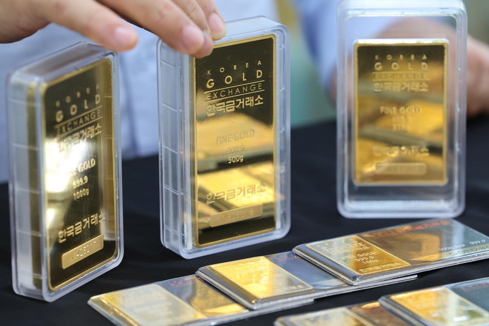 서울 종로구 한국금거래소에서 직원이 골드바를 들어보이고 있다. 2025.09.23. 뉴시스