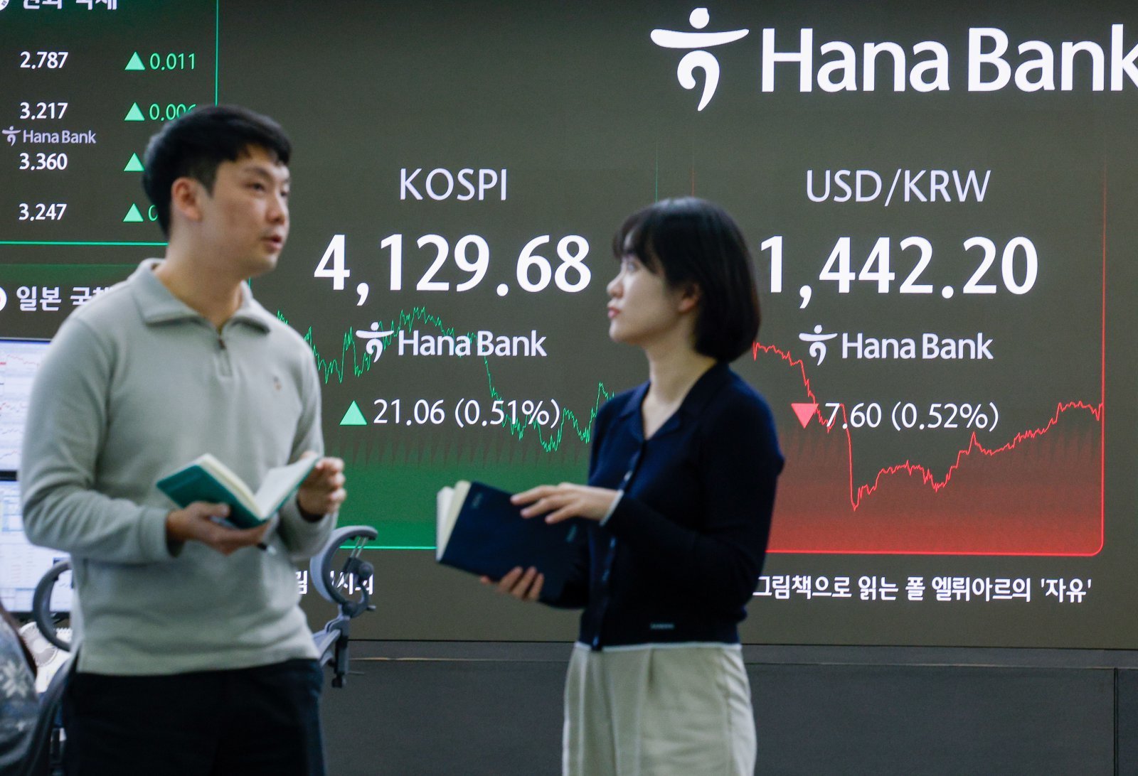 26일 오후 서울 중구 하나은행 딜링룸 전광판에 코스피, 코스닥 종가와 원·달러 환율이 나오고 있다. 2025.12.26/뉴스1