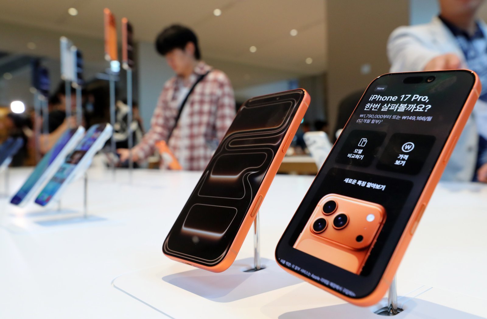 19일 서울 중구 명동 애플스토어에서 고객들이 애플 신제품 아이폰17 시리즈를 살펴보고 있다. 2025.09.19 뉴시스