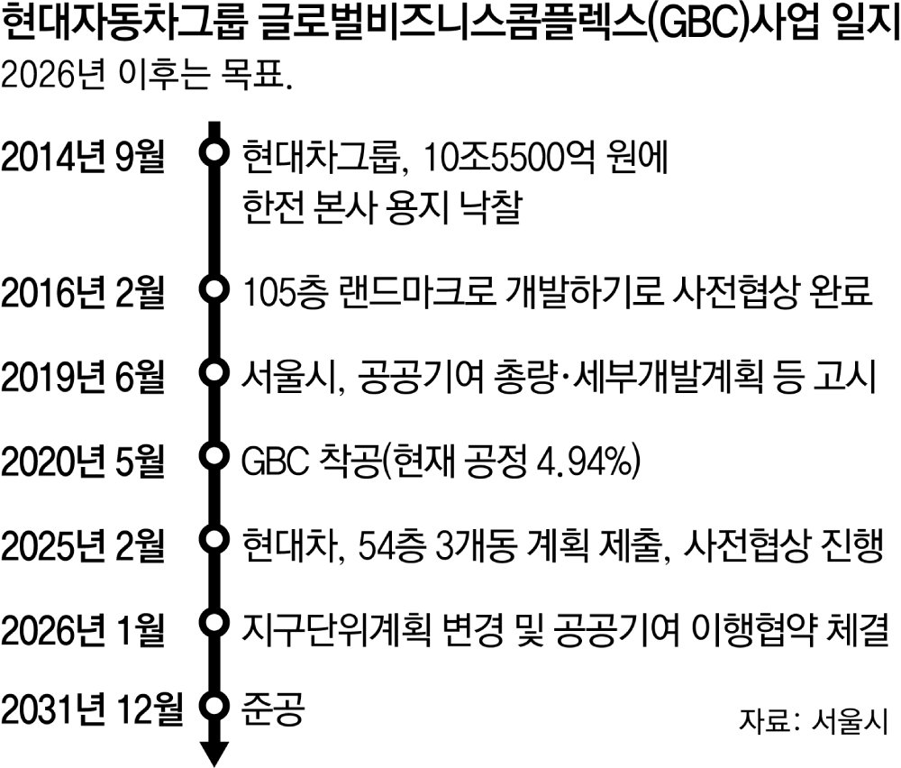 서울시는 추가 협상을 진행해 내년 1월까지 현대차와 공공기여 이행협약을 체결할 계획이다. 준공 예정 시점은 2031년 12월이다. 서울시 측은 “협상이 끝나는 대로 구체적 결과를 공개할 것”이라고 설명했다.
