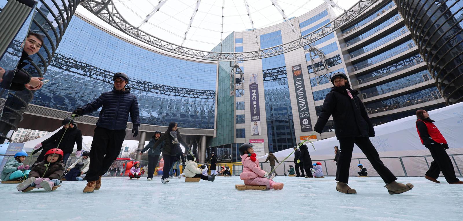 28일 서울 송파구 가든파이브 ‘하하호호 눈썰매장’에서 어린이들이 눈썰매를 즐기고 있다. 송파구가 운영하는 하하호호 눈썰매장은 내년 1월 25일까지 개장한다. 눈썰매는 초등학생 이하 어린이들만 탈 수 있으며, 이용 요금은 무료다.