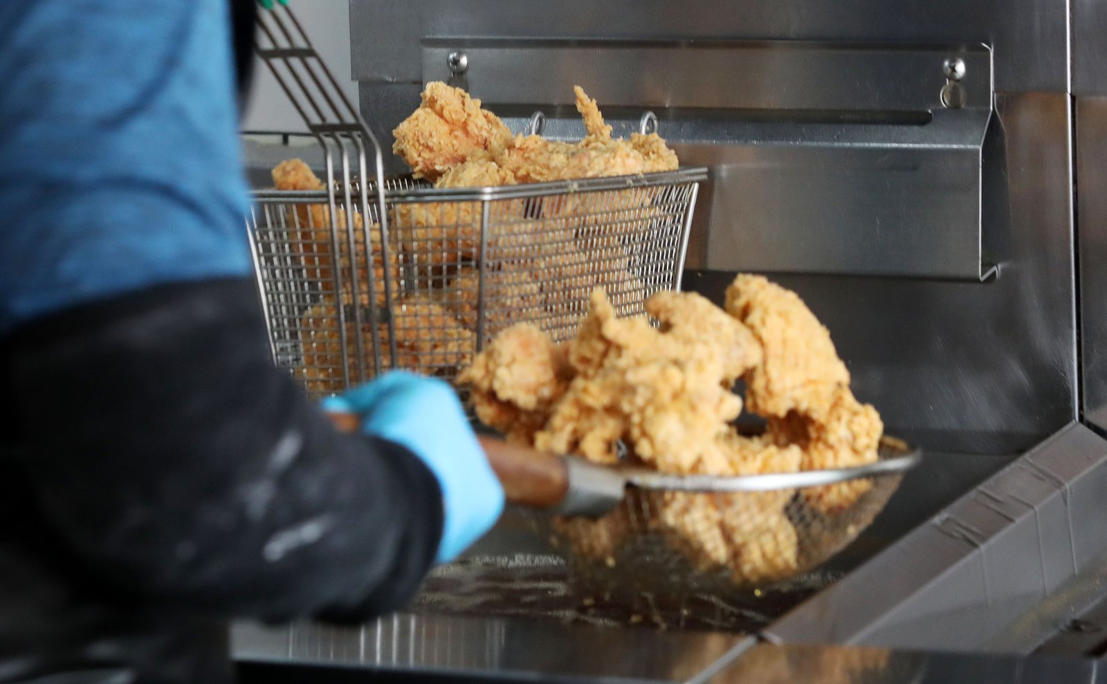 서울 시내 한 치킨 가맹점에서 점주가 치킨을 튀기고 있다. 2022.03.23. 뉴시스