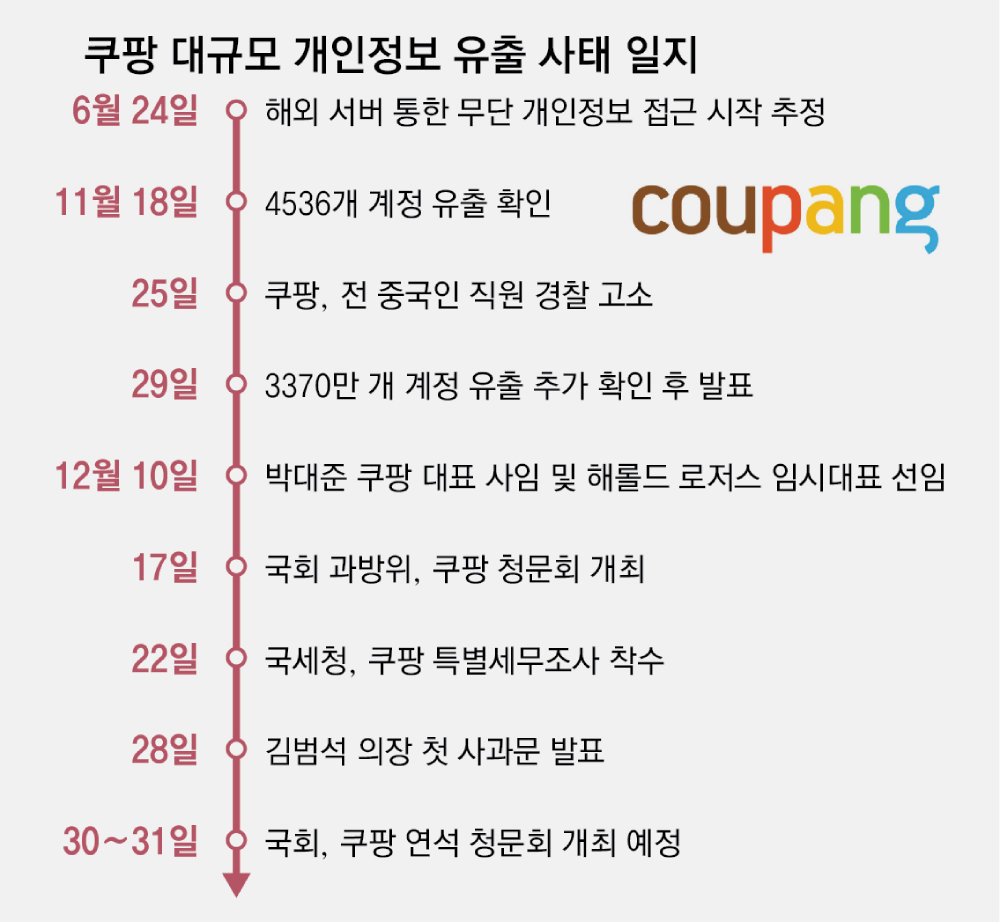 쿠팡에서 3370만 명의 대규모 개인정보 유출 사태가 발생한 지 한 달 만에 쿠팡 창업자인 김범석 쿠팡Inc 의장이 공식 사과문을 발표했다. 김 의장은 “미흡한 대응과 소통 부족에 사과한다”고 밝혔지만 사과 시점이 너무 늦은 데다 내용도 해명 위주의 ‘맹탕’이라는 평가가 많다. 30, 31일 국회에서 열리는 연석 청문회에 김 의장이 또 불출석할 것으로 알려지면서 쿠팡을 향한 여론은 악화되는 분위기다.