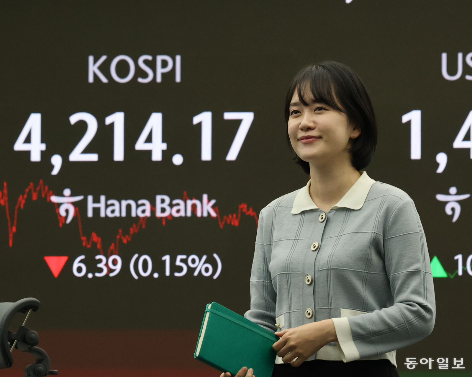 올해 국내 증시 폐장일인 30일 코스피는 전 거래일(4,220.56) 보다 6.39포인트(0.15%) 내린 4,214.17에 거래를 마친 가운데 서울 중구 하나은행 딜링룸 전광판에 종가가 나타나 있다. 이한결 기자 always@donga.com