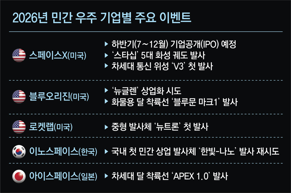 미국뿐 아니라 일본의 아이스페이스, 한국의 이노스페이스도 올해 우주 수송 시장에 뛰어든다. 이노스페이스는 국내 민간 기업 중 최초로 올해 상업 발사를 시도했지만 기체 손상으로 실패했다. 올 상반기(1∼6월) 발사 재시도에 나설 계획이다.