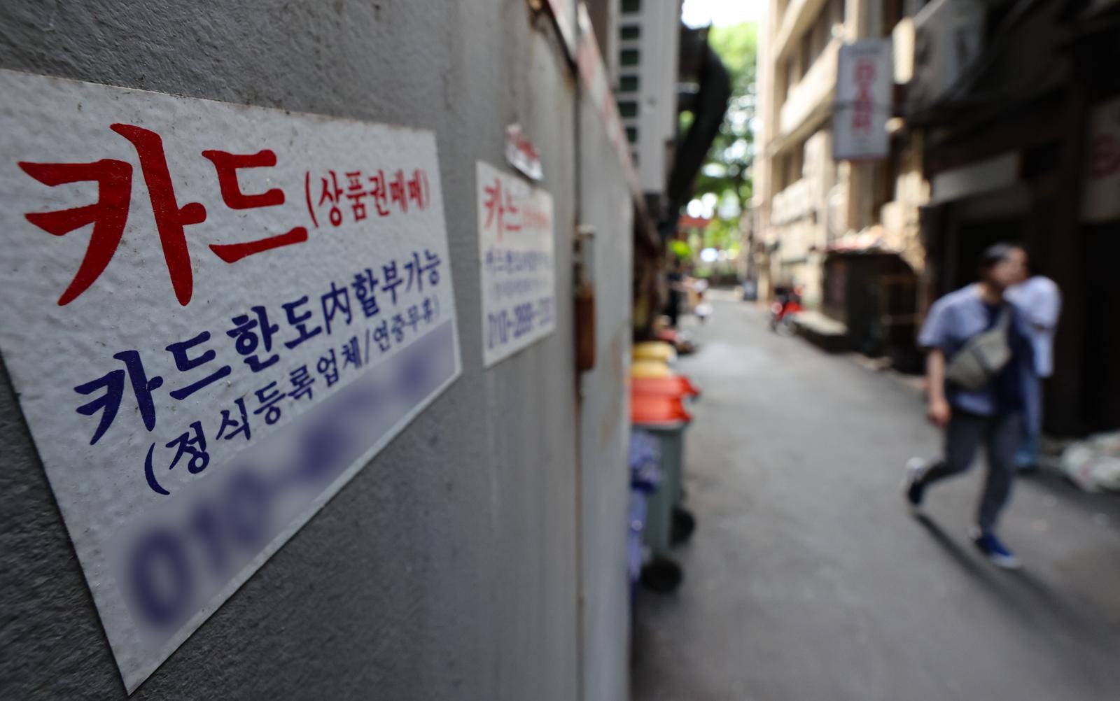 한국은행에 따르면 현금 서비스와 카드론 등 일반은행의 신용카드 대출금 연체율이 지난 2월 말 3.4%로, 2014년 11월(3.4%) 이후 10년만에 가장 높은 것으로 집계됐다. 신용점수가 낮은 차주들이 1·2금융권에서 대출에 실패하자 카드론 등으로 몰린 영향으로 해석된다. 사진은 29일 서울 시내 한 거리에 붙은 신용카드 대출 광고물. 2024.05.29 뉴시스