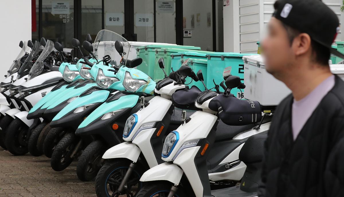 서울 강남구 논현동 배달의민족 자회사 ‘딜리버리N’ 앞에 오토바이들이 주차되어 있다. 2023.5.5 뉴스1