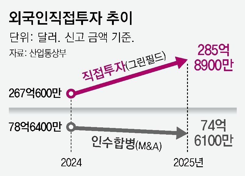 7일 산업통상부가 발표한 ‘2025년 FDI 동향’에 따르면 지난해 신고 금액 기준 FDI는 전년 대비 4.3% 증가한 360억5000만 달러로 집계됐다. 2021년 이후 5년 연속 역대 최대치다.