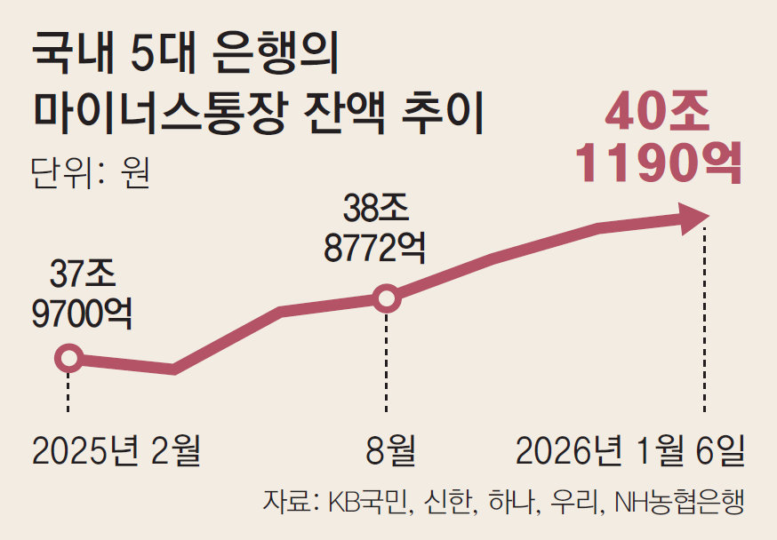 이 같은 분위기는 은행권에서도 나타나고 있다. 올해 1월 6일 현재 5대 은행(KB국민, 신한, 하나, 우리, NH농협은행)의 마통 잔액은 40조1190억 원으로 전월 말 대비 0.48%(1915억 원) 늘었다. 2023년 1월 말(40조5395억 원) 이후 최대치다.