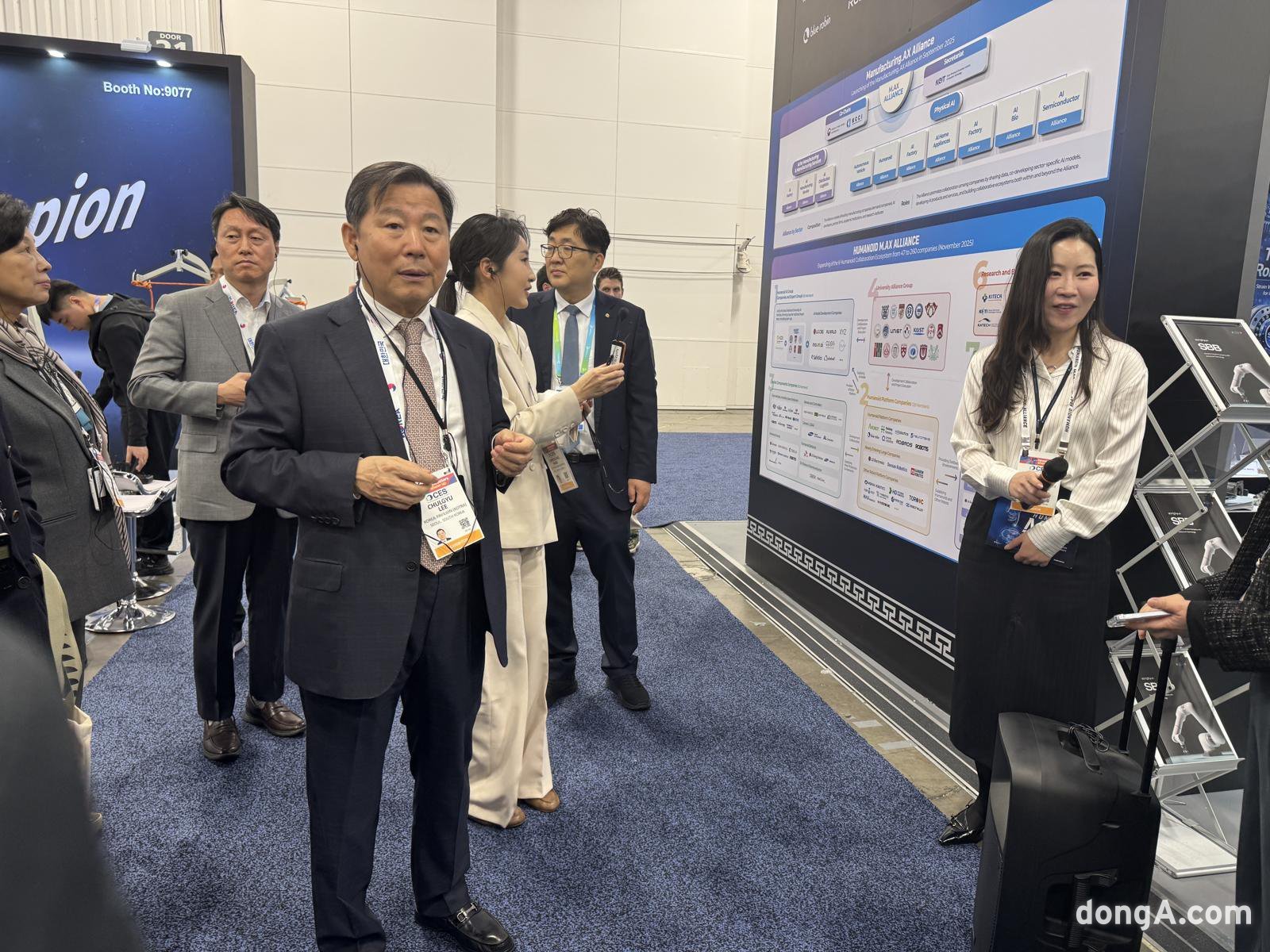 정 회장은 이재명 대통령의 방중 일정에 동행한 직후 곧바로 라스베이거스로 이동해 삼성전자, LG전자, 퀄컴, 두산 부스를 차례로 방문했으며, 이후 엔비디아 전시관도 찾았다. 전시물 관람은 약 10분간 진행됐고, 이후 젠슨 황 엔비디아 CEO와 30분가량 비공개 면담을 가진 것으로 알려졌다.
