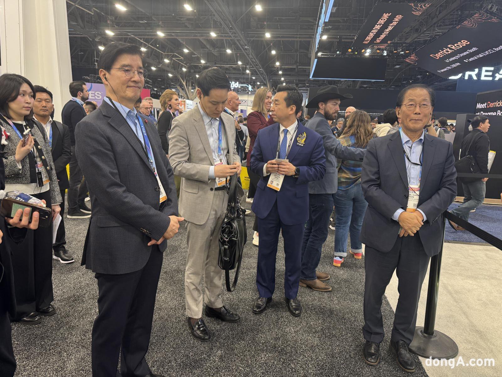 정의선 현대자동차그룹 회장이 6일(현지시간) 미국 네바다주 라스베이거스 컨벤션센터 센트럴 홀에서 LG전자 관계자와 만나고 있다. 정진수 기자 #정의선 회장 강행군 정의선 현대자동차그룹 회장은 CES 2026 개막일인 6일(현지시간) 미국 라스베이거스 컨벤션센터를 찾아 주요 협력사와 글로벌 기술 트렌드를 점검했다.