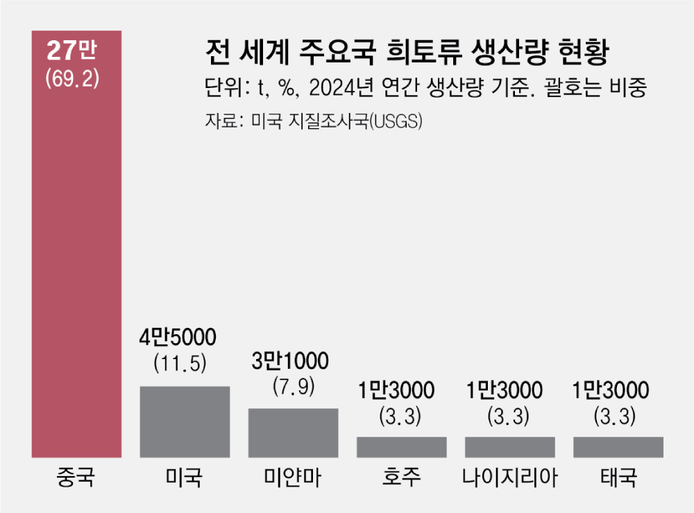 한국은 희토류 원재료 89.4%를 중국에서 수입해 가공한 뒤 반도체 장비 부품, 전력 제어용 정밀 부품을 만들어 일본에 수출하고 있다. 방산, 항공·우주 등 군사 분야에 쓰일 수 있는 품목이다.