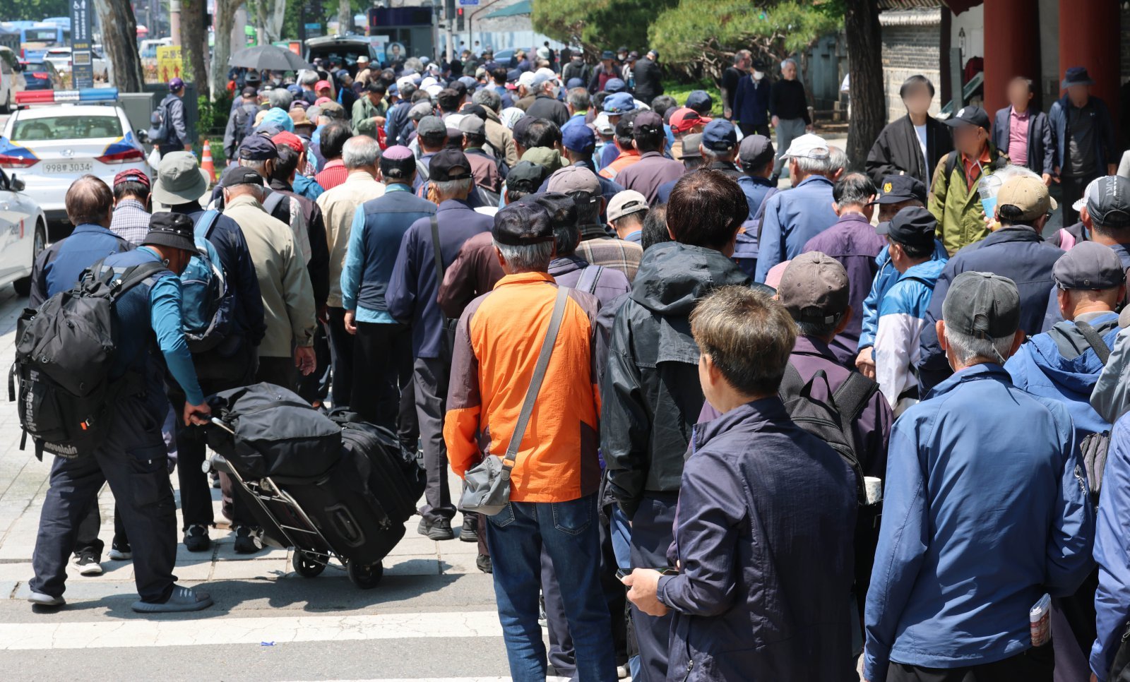12일 서울 종로구 탑골공원 무료급식소에서 어르신들이 줄을 서서 기다리고 있다. 2025.5.12 (서울=뉴스1)