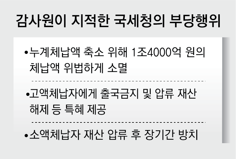 ● ‘체납액 100조 맞추기’에 1조4000억 원 부당 탕감
