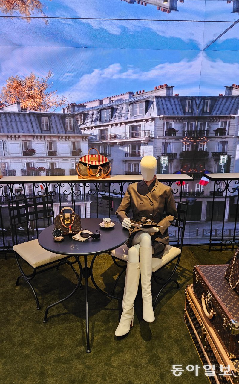 프랑스 럭셔리 브랜드 루이비통이 ‘모노그램’ 패턴 탄생 130주년을 맞아 서울 강남구 루이비통 도산 스토어를 새롭게 단장했다고 13일 밝혔다. 도산스토어 2층 발코니 콘셉트 공간에 파리의 낮과 밤을 배경으로 한 ‘알마’ 전시장이 마련돼 있다. 이소정 기자 sojee@donga.com