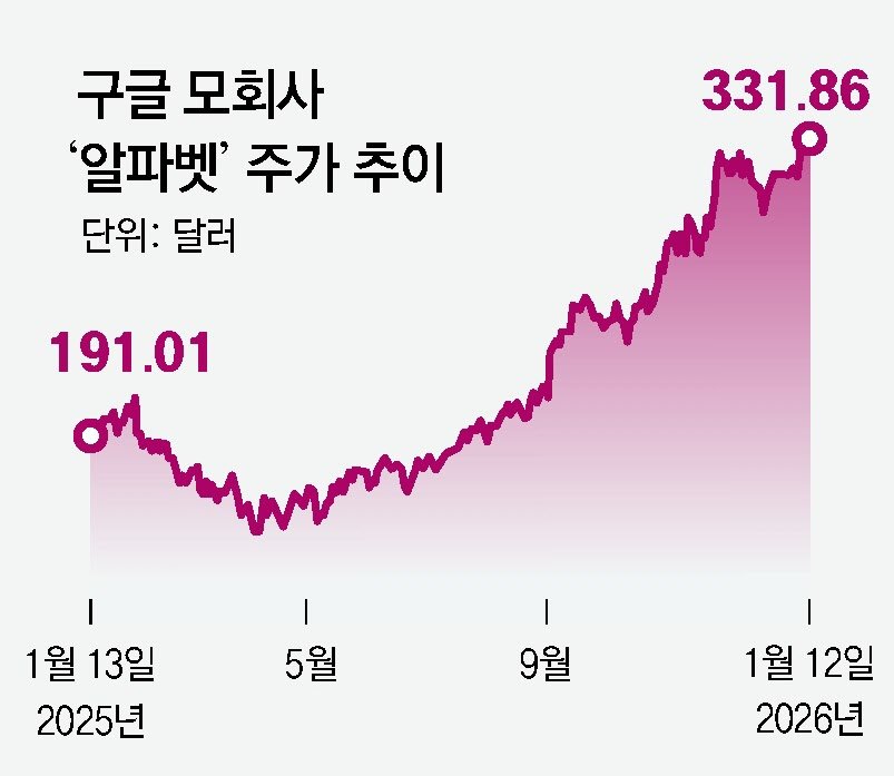 애플과 구글은 12일 구글 블로그에 공동 발표문을 내고 “차세대 애플 파운데이션 모델을 구글의 제미나이 모델과 클라우드 기술을 기반으로 구축하는 계약을 맺었다”고 밝혔다. 이 소식이 전해지면서 이날 구글의 모회사 알파벳의 주가가 상승해 시가총액 4조 달러(약 5898조 원)를 돌파했다. 엔비디아·MS·애플에 이어 사상 네 번째 기업이다. 알파벳 주가는 지난해 1월 13일 종가 기준 191.01달러였는데, 12일 종가가 331.86달러로 73.74% 올랐다.