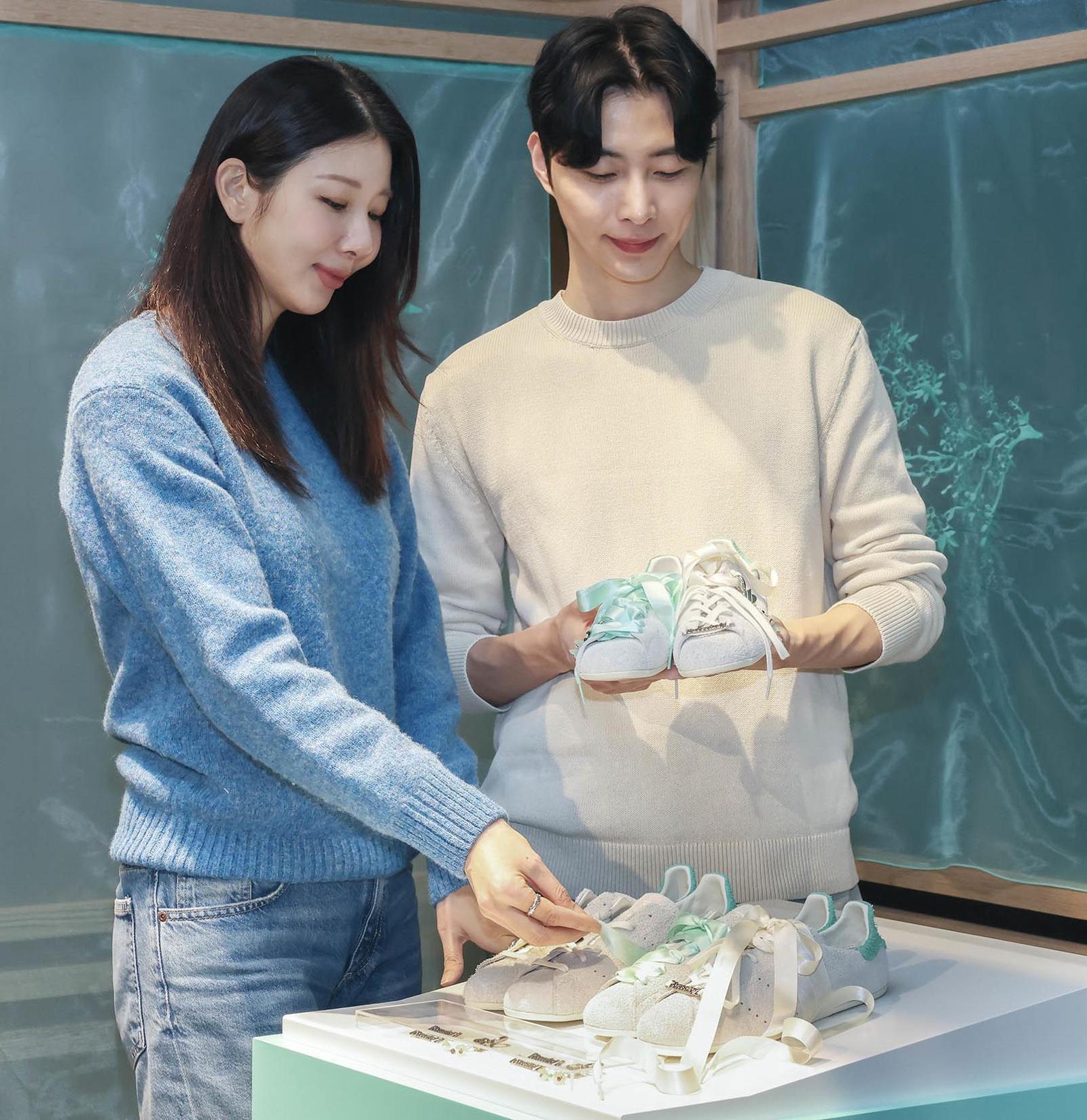15일 서울 강남구 분더샵 청담점에서 모델들이 신세계백화점 자체 편집숍 ‘케이스스터디’와 스포츠브랜드 아디다스 오리지널스가 ‘한국의 멋’을 주제로 협업해 만든 한정판 스니커즈를 소개하고 있다. 분더샵 청담점, 케이스스터디 신세계 강남점·센텀시티점·본점, 케이스스터디 온라인 채널에서 구매할 수 있다.