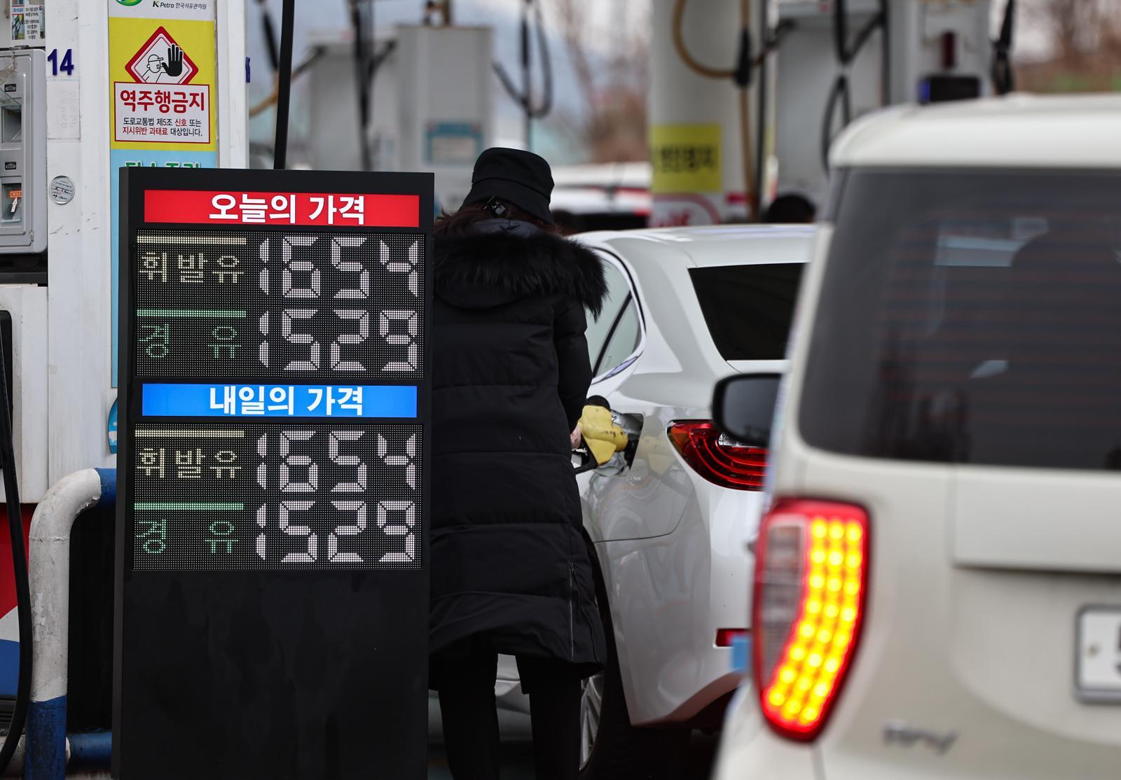 18일 서울 서초구 경부고속도로 만남의광장 휴게소 내 주유소에 기름값이 표시돼 있다. 한국석유공사 유가정보 사이트 오피넷에 따르면 1월 둘째 주 전국 주유소의 휘발유 평균 판매 가격은 직전 주보다 14.5원 내린 L당 1706.3원으로 6주 연속 하락했다.