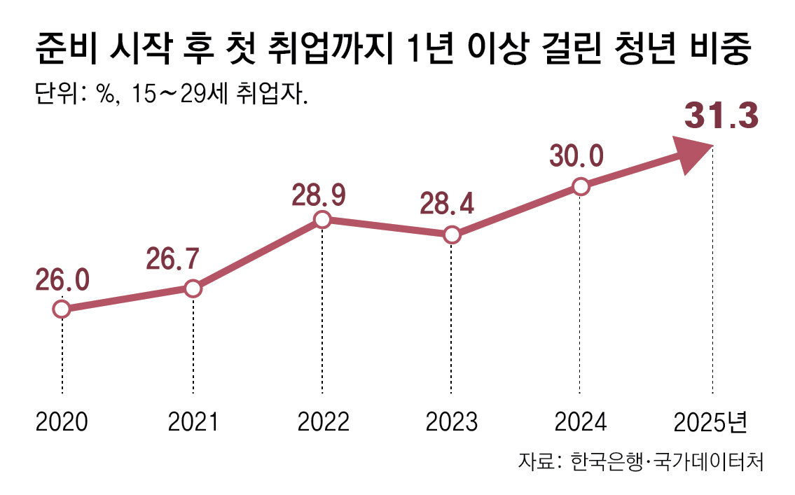 취업이 늦어지는 이유는 일자리 문턱이 높아졌기 때문이다. 성장이 정체된 데다 대기업들이 경력직을 선호하거나 수시 채용을 늘리고 있어 첫 취업 관문이 좁아진 셈이다.