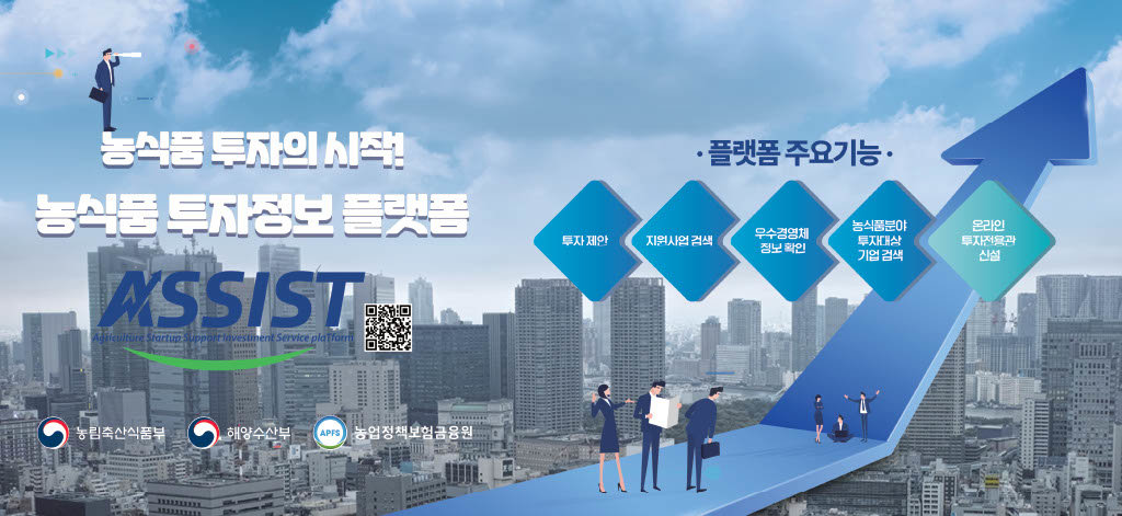 ASSIST(어시스트)는 첨단기술이 접목된 농식품 산업 선도 분야의 빠른 성장에 발맞춰 농금원이 투자 유치를 희망하는 농식품 기업과 투자자를 연결하기 위해 2023년 9월 개설한 통합 플랫폼이다. 투자자는 경영체 검색 기능을 이용해 투자 분야별로 등록된 경영체 정보를 확인하고 미팅을 신청할 수 있으며 경영체는 기업 IR 자료를 등록해 투자자에게 직접 투자 제안을 할 수 있다.
