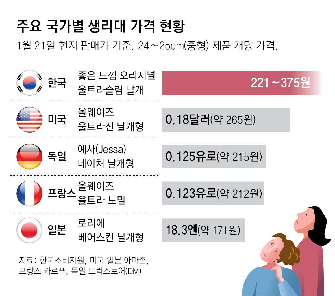 한국 생리대 가격, 日보다 비싸고 美-佛-獨과 엇비슷