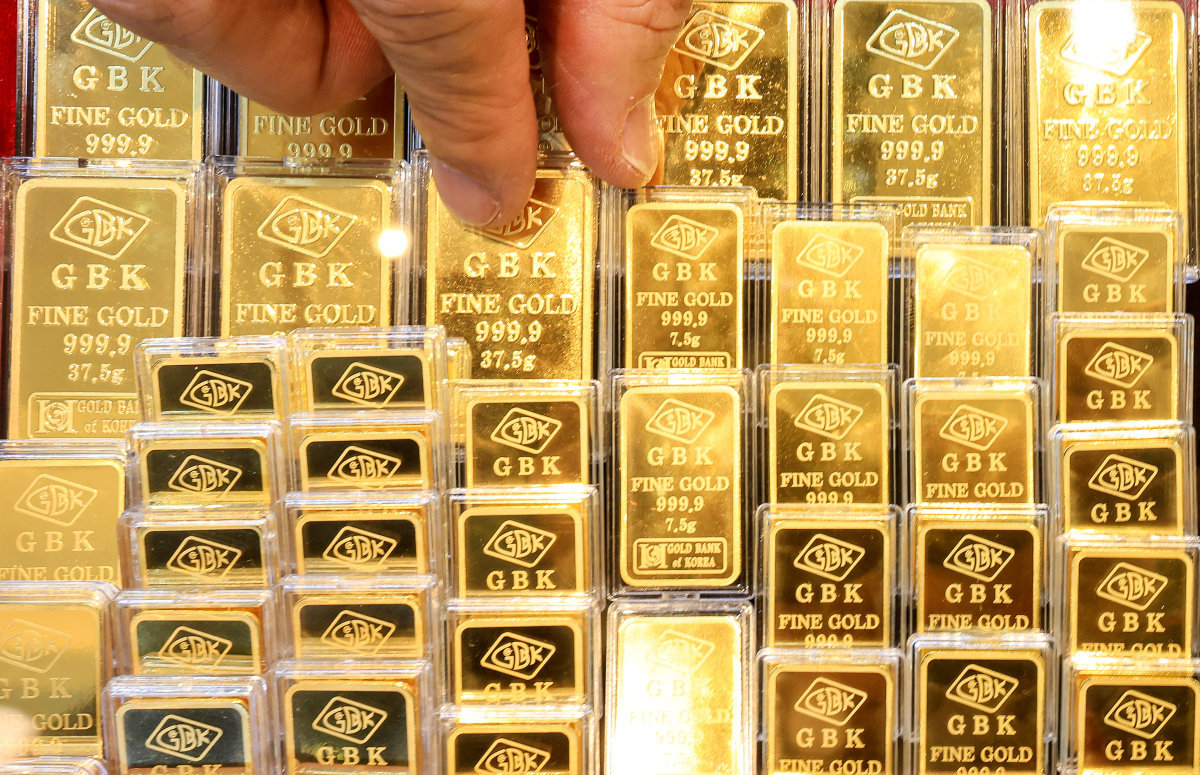 금과 은 가격이 사실상 최고 수준으로 치솟은 1월 21일 서울 종로구 한 금은방에서 직원이 골드바를 정리하고 있다. 뉴스1