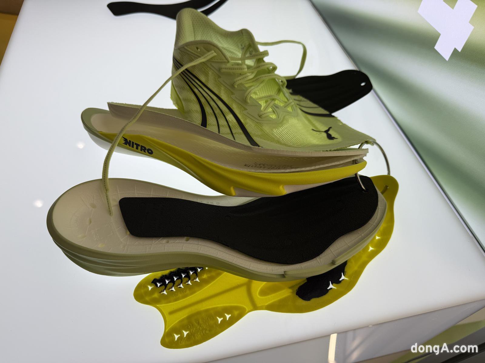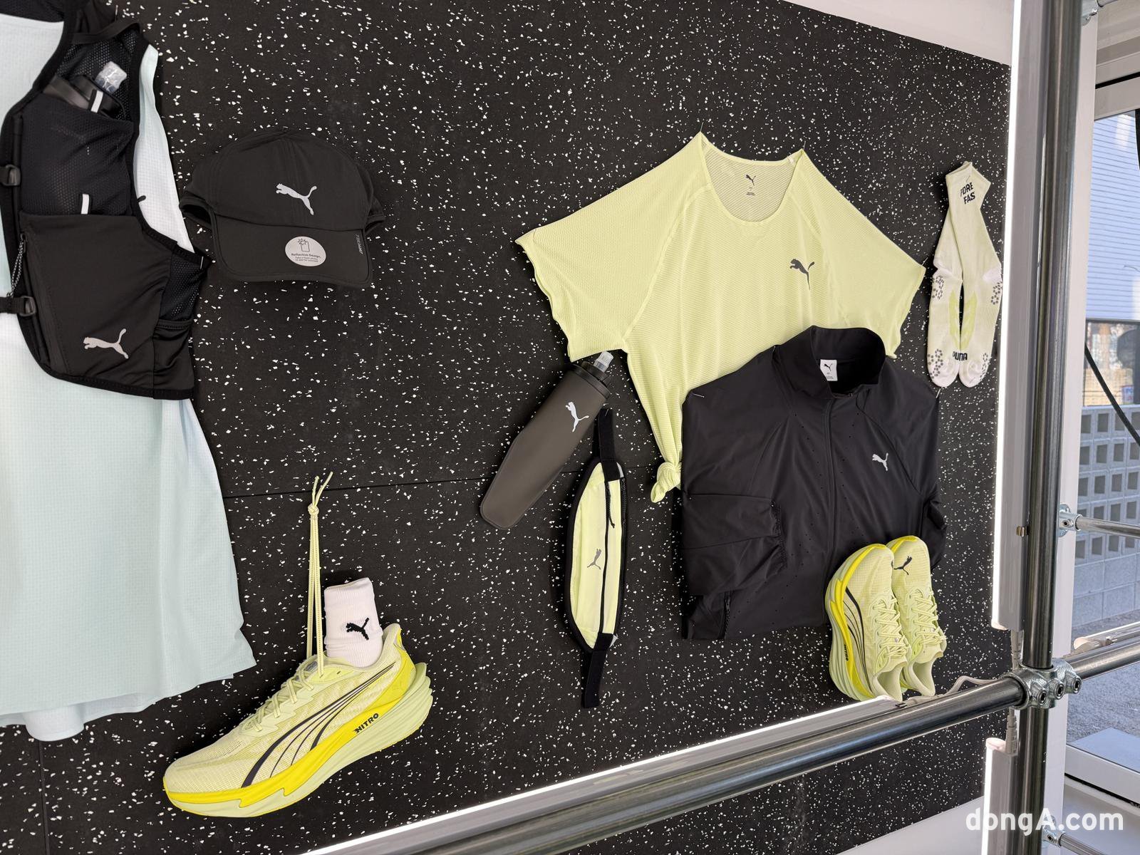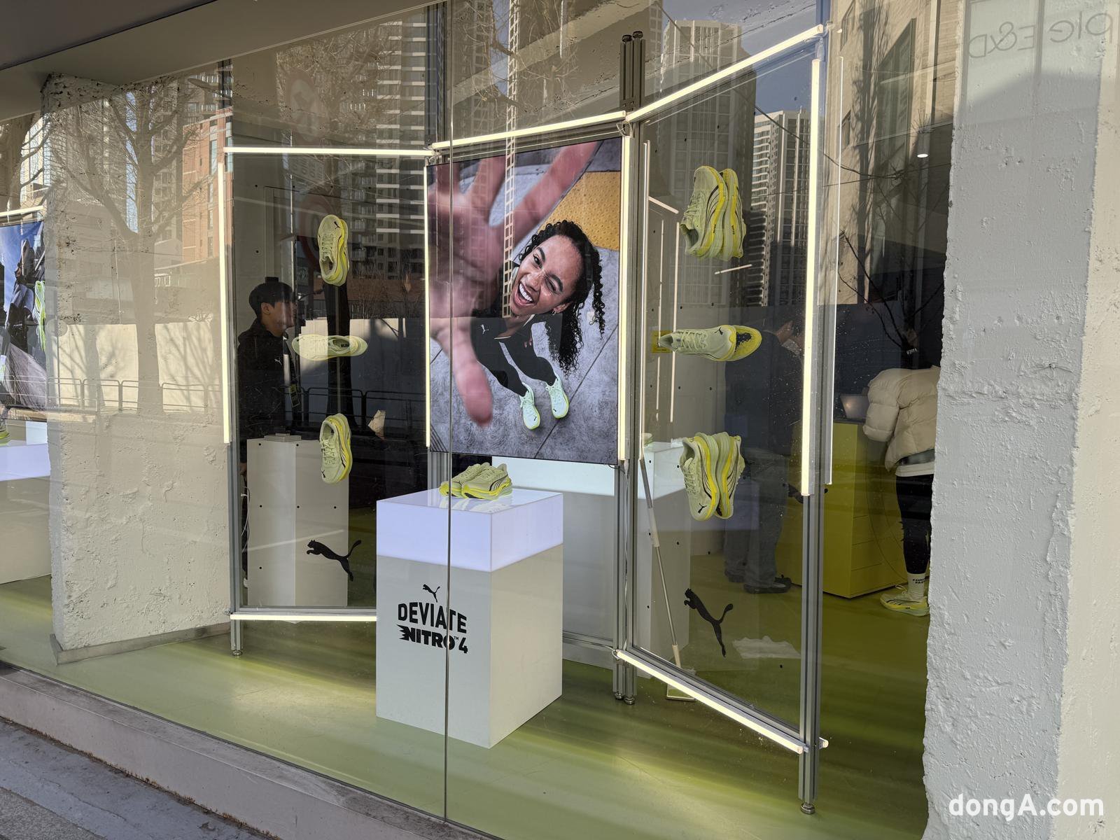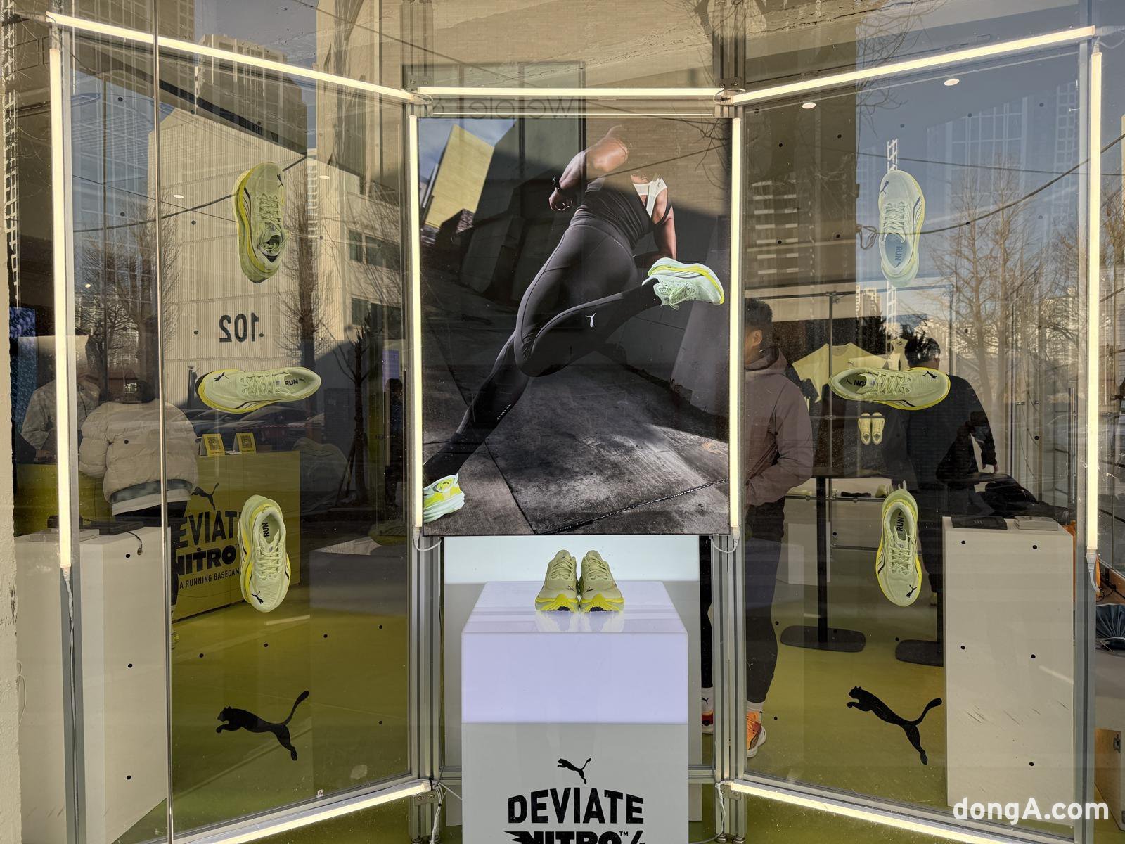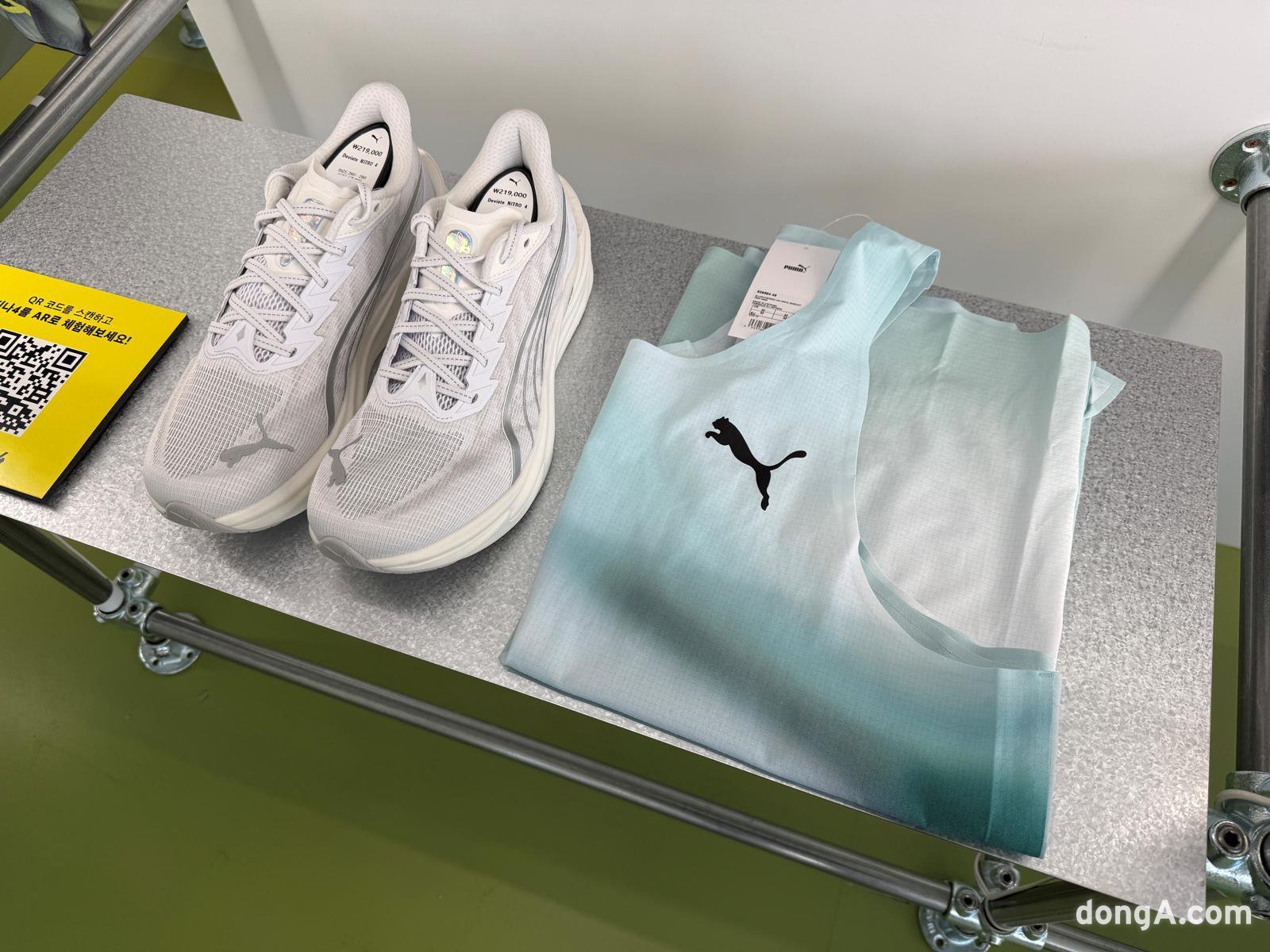 팝업스토어는 1층과 지하 1층으로 나뉘어 운영된다. 1층에서는 디나4의 주요 기술을 자세히 볼 수 있으며, 2026년 푸마 러닝 라인업 아이템도 함께 전시된다. 외부에서 신발을 신고 달려보는 트라이얼 존도 마련돼 실제 착화감을 테스트할 수 있다.