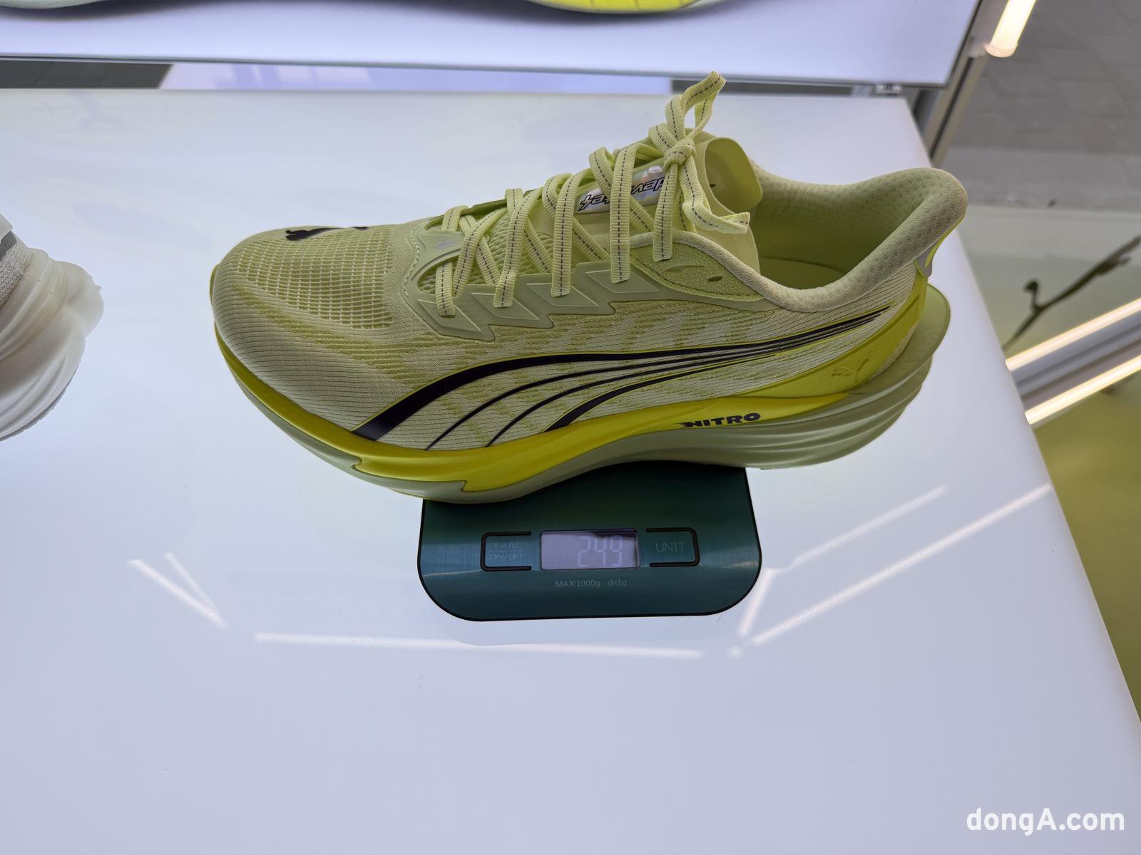 현장에서 디나4를 신고 테스트해보니 한층 부드러워진 착용감과 통통튀는 반발력이 인상적이었다. 양말을 착용한 듯한 편안한 감각과 질소를 충전한 중창의 쫀득한 쿠션감이 이전 모델의 완성도에서 확실하게 발전한 모습이었다.