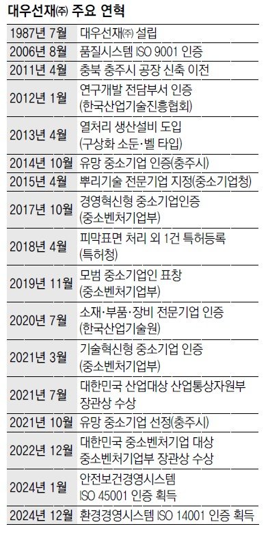 대우선재가 선택한 길은 명확하다. 위기를 견디는 것이 아니라 위기 이후를 준비하는 것. 39년간 쌓아온 기술력에 친환경과 스마트공장이라는 날개를 달아 조선과 철강 등 새로운 업종 진출을 모색하며 100년 기업을 향해 한 걸음씩 나아가고 있다. 충북 충주 공장의 열처리로가 오늘도 뜨거운 이유다. 공정 고도화와 기술 축적, 직원에 대한 믿음이 대우선재가 다시 쓰는 생존 공식의 출발점이다.
