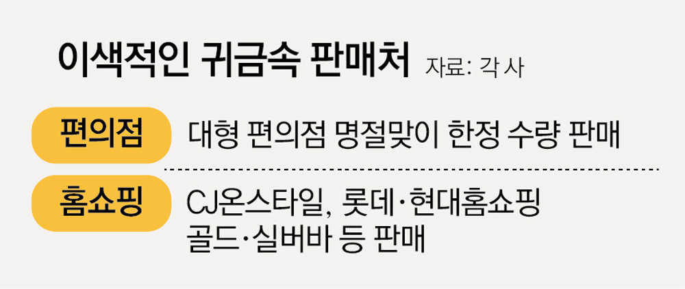 통상 소비자들은 귀금속 매장, 은행 등에서 금과 은을 사고 팔았다. 최근에는 편의점과 홈쇼핑에서 귀금속을 사는 이들이 늘어나고 있다. 세븐일레븐은 명절을 앞두고 골드바 5종을 내놓았는데 판매 개시 열흘 만에 340돈이 팔려 나갔다.