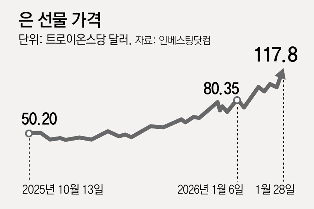 황병진 NH투자증권 연구원은 “은 가격이 단기적으로 급등하면서 100달러를 상회한 만큼 단기 변동성이 불가피한 상황”이라며 “무분별한 추격 매수는 자제할 필요가 있다”고 진단했다.
