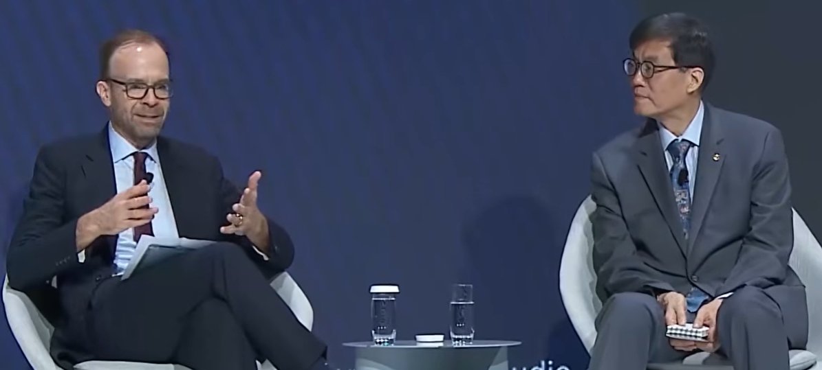 그는 최근 원화 하락의 원인으로 환율 상승 기대 심리를 지목했다. 이 총재는 또 “국제 투자자뿐 아니라 개인, 국민연금, 기관 투자자 등 국내 투자자들이 여전히 원화 가치가 더 떨어질 것이라고 믿고 있다”며 “기대 심리와 싸우는 것은 매우 힘든 일”이라고 했다.