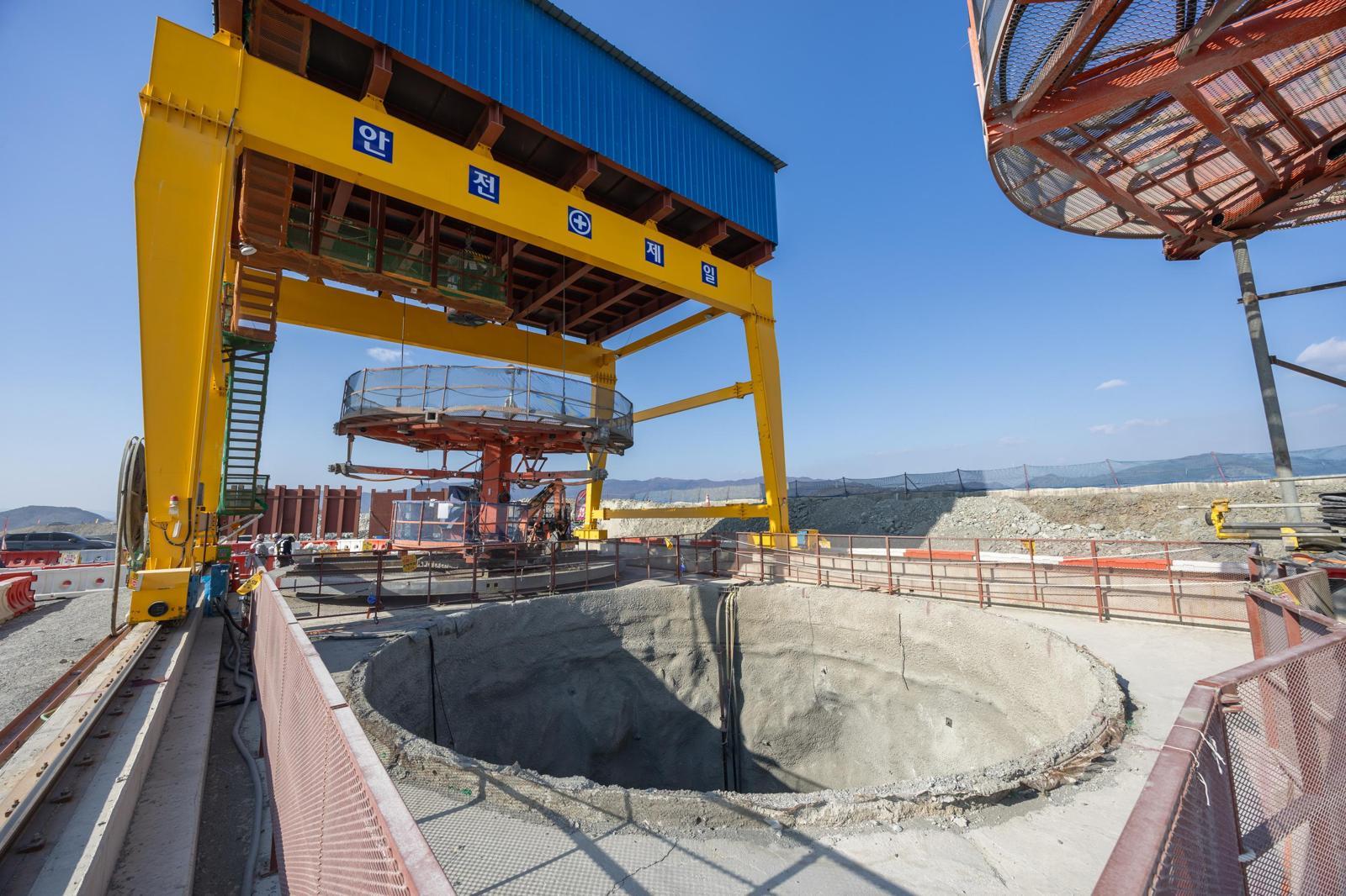굴착된 석재는 구멍을 통해 지하로 바로 배출돼 석재를 퍼올리는 후공정을 생략할 수 있다. 이를 통해 추락 사고 위험을 낮추고, 공사 기간도 기존 대비 30% 단축했다. 이후 회전 천공기를 장착한 갠트리 크레인이 이를 뚫고 지나가면 수직터널의 지름이 10m까지 커진다.