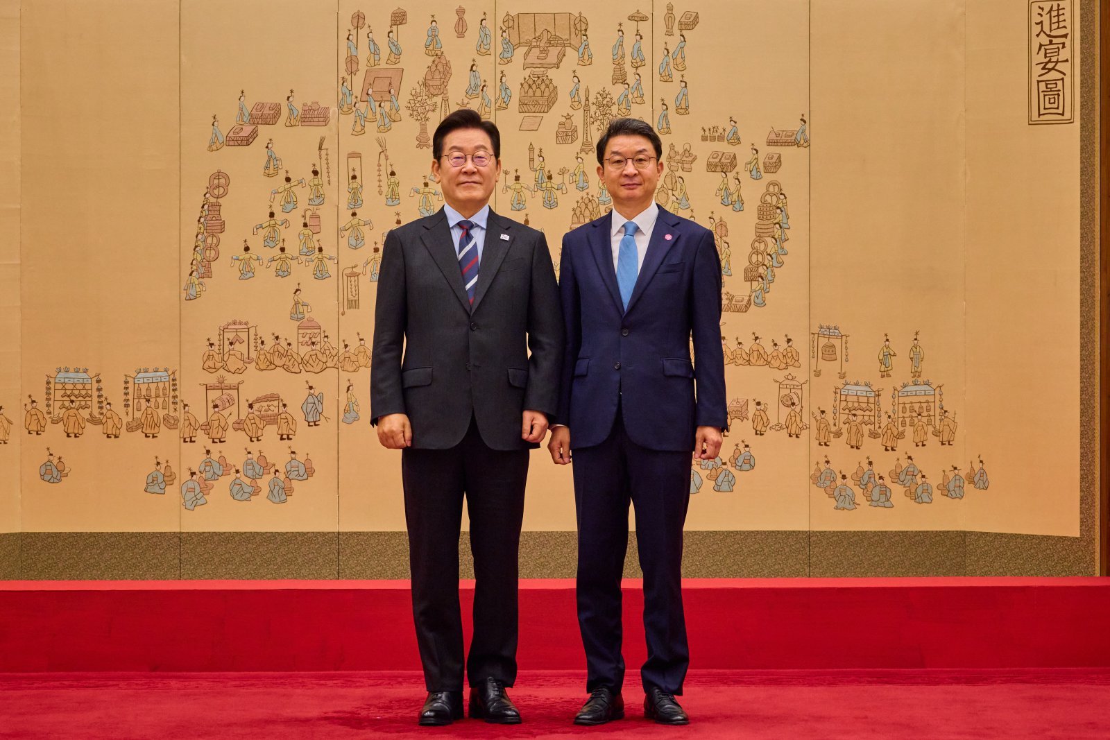 李 “해외 일정 취소하고 오셨다고요”…이재용 “당연합니다”