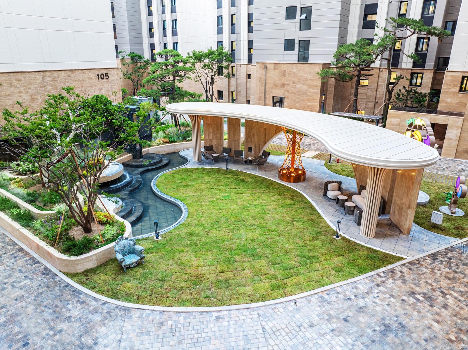 이번에 수상한 디에이치 대치에델루이의 ‘아뜰리에 티하우스’는 ‘작가들의 정원’을 콘셉트로 조형미와 큐레이션된 예술 작품이 조화를 이루는 커뮤니티 공간이다. 건축 외관과의 자연스러운 연결과 사용자 경험을 고려한 동선 계획으로 휴식과 교류의 가치를 건축적으로 구현했다는 평가를 받았다.