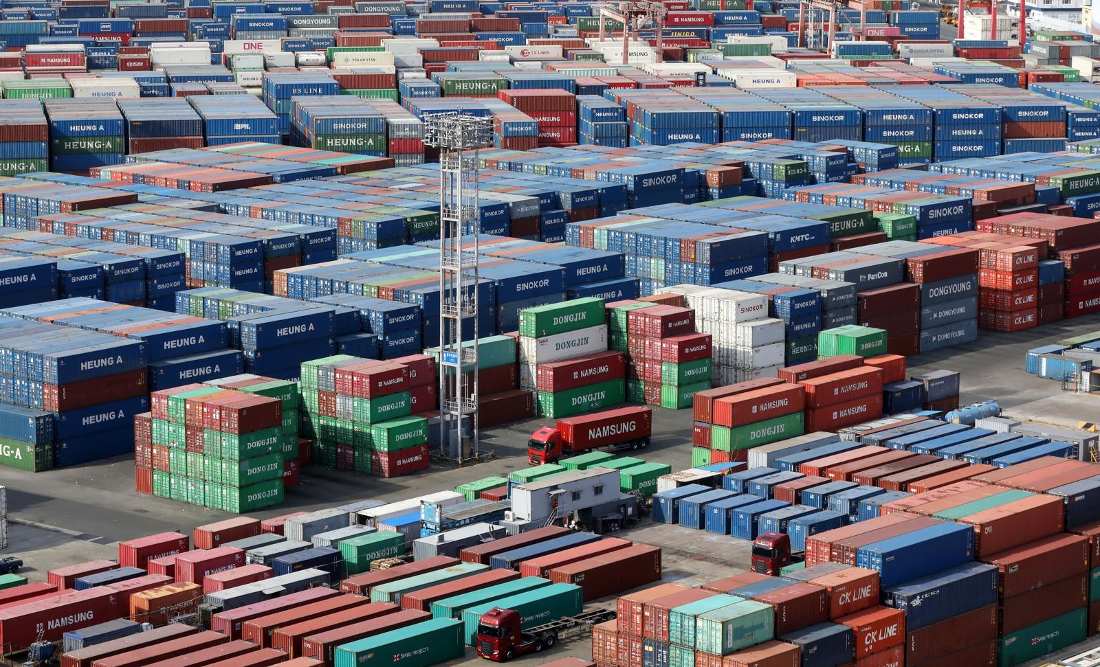 6일 부산항 신선대부두 야적장에 컨테이너가 가득 쌓여 있다. 한국은행이 이표한 ‘2025년 12월 국제수지(잠정)’에 따르면 지난 2025년 연간 경상수지는 1230억 5000만 달러 흑자로 집계됐다. 이는 우리 경제가 기록한 연간 경상수지 흑자 중 가장 큰 규모다. 종전 최대 기록인 2015년(1051억 2000만 달러) 실적을 180억 달러가량 웃돌았다. 2026.2.6/뉴스1