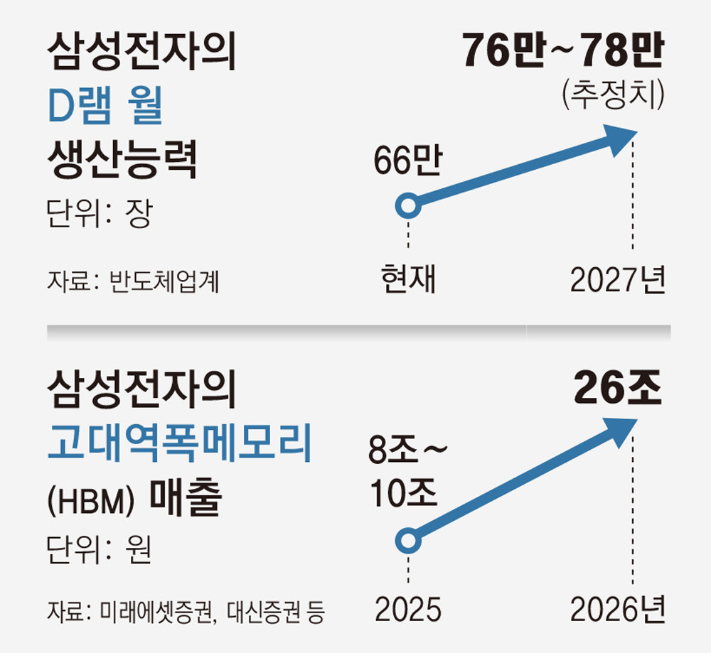 삼성전자는 HBM 훈풍에 따라 설비 투자에도 적극 나서고 있다. 업계에 따르면 삼성전자는 최신 팹인 경기 평택 4공장(P4)에서 웨이퍼 기준 월 생산 10만∼12만 장 규모의 D램 생산설비를 새로 만들 계획으로 알려졌다. 삼성전자의 현재 D램 생산 능력은 월 66만 장인데 P4 신규 설비가 추가되면 약 20% 늘어나게 된다. 삼성전자는 특히 증설한 라인 대부분을 HBM4를 만드는 데 쓰는 1c D램 설비로 갖출 예정이다.