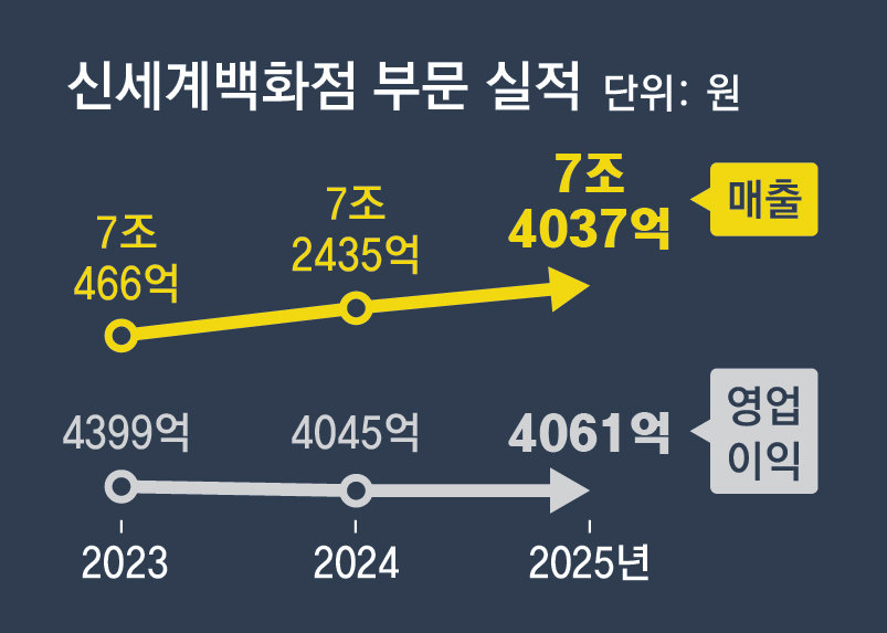 신세계백화점은 내수 부진 속에서 강남점과 본점을 중심으로 한 핵심 점포 전략을 통해 성장한 것으로 분석했다. 신세계백화점은 최근 3년간 강남점과 본점 리뉴얼에만 한 해 영업이익에 맞먹는 약 4300억 원을 투자했다. 강남점은 2024년 문을 연 디저트 전문관 ‘스위트파크’와 미식으로 주목받는 ‘하우스 오브 신세계’ 등을 통해 2023년부터 매출 3조 원이 넘는 ‘글로벌 메가 점포’로 거듭났다. ‘더 헤리티지’와 ‘리저브’로 재단장한 본점은 루이비통, 에르메스 등 명품 브랜드 대형 매장과 공간 경험을 결합해 서울 도심을 대표하는 쇼핑·관광 거점으로 자리 잡으며 연 매출 1조5000억 원을 바라보고 있다.