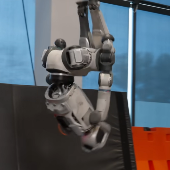 7일 공개된 영상에서 보스턴 다이내믹스의 휴머노이드 로봇 아틀라스가 공중 백텀블링을 성공한 뒤(세 번째) 안정적으로 착지하는 모습(네 번째) 등이 공개됐다. 보스턴 다이내믹스 제공아틀라스는 영상에서 숙련된 체조 선수처럼 옆돌기와 백텀블링을 잇달아 수행한 뒤 두 발로 한 번의 반동도 없이 착지하는 모습을 선보였다. 도움닫기를 하는 순간과 옆돌기 직전 두 다리를 순서대로 강하게 땅에 디뎌 탄력을 이용하는 모습, 백텀블링 직전 발끝을 이용해 공중에 도약하는 모습 등이 사람의 운동 동작과 거의 차이가 없었다.