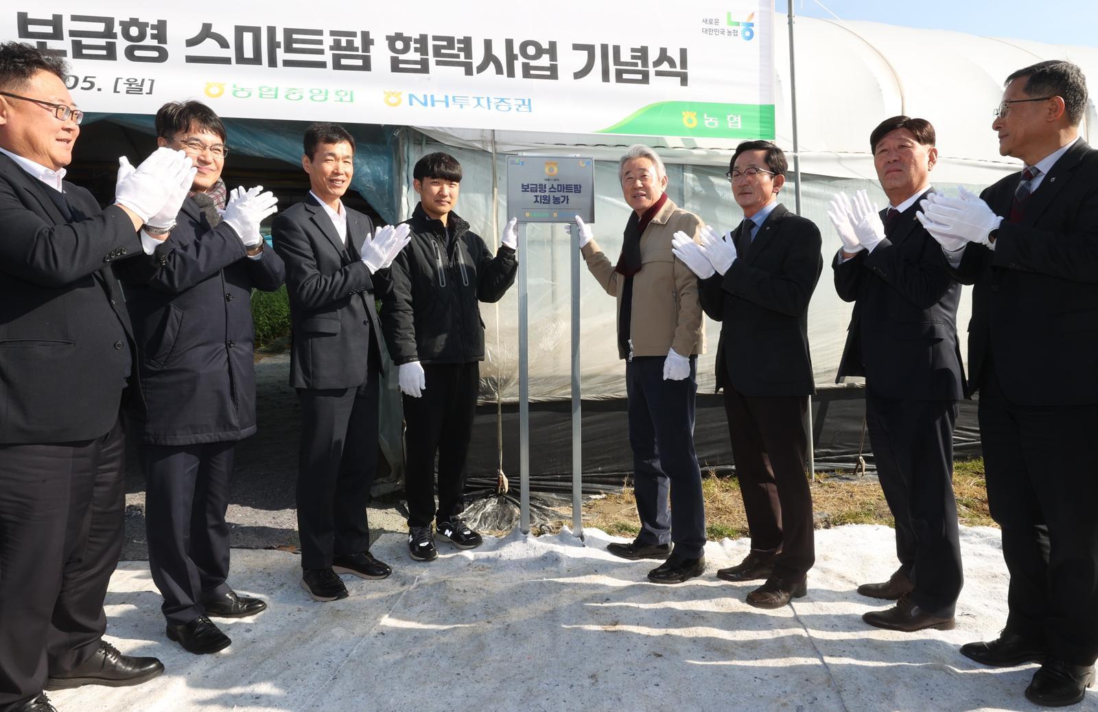 보급형 스마트팦 지원사업은 농협의 중점 사업으로 추진되고 있다. 강호동 농협중앙회장은 지난 1월 5일 새해 첫 현장경영으로 충남 논산의 보급형 스마트팜 농가를 방문해 사업 추진 현황을 점검한 바 있다.