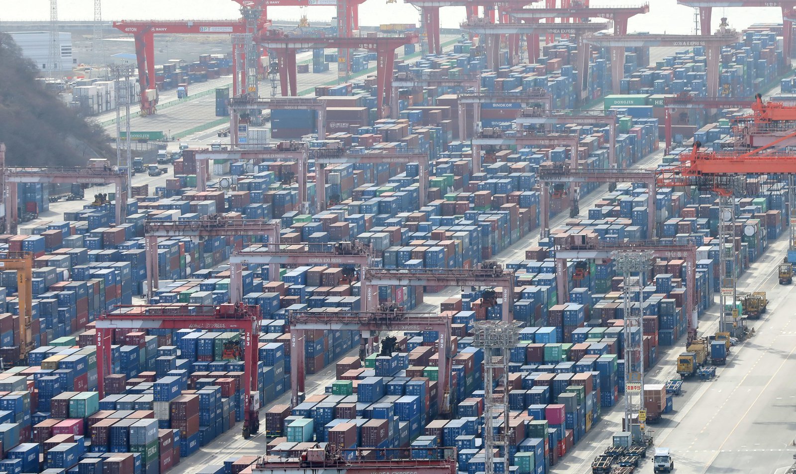 6일 부산항 신선대부두 야적장에 컨테이너가 가득 쌓여 있다. 2026.2.6 ⓒ뉴스1