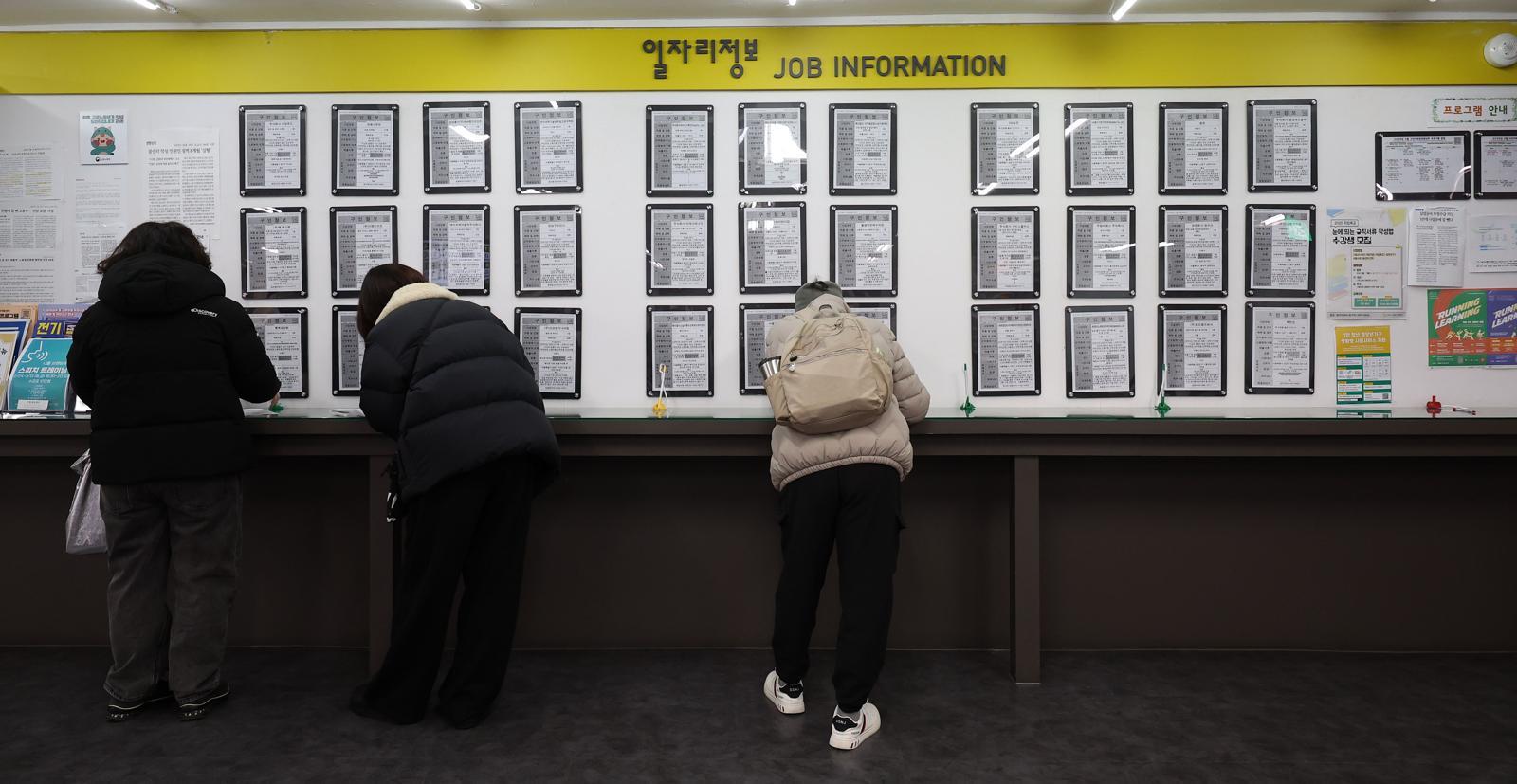 11일 국가데이터처가 발표한 ‘1월 고용동향’에 따르면 지난달 15~29세 청년층의 고용률은 1년 전보다 1.2%포인트 하락한 43.6%로 집계됐다. 코로나19 여파로 경기 침체가 발생했던 2021년 1월(41.1%) 이후 가장 낮은 수치다. 데이터처 관계자는 “제조업과 숙박·음식업, 서비스업 등의 경기가 좋지 않자 채용이 줄어들며 고용 지표가 악화된 것으로 보인다”고 설명했다.