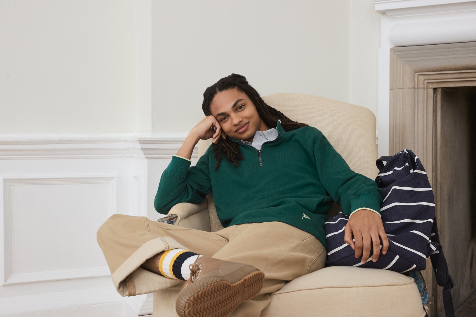 이번 컬렉션은 클래식한 프레피 스타일에 위트를 더했다. 가볍고 심플한 캠퍼스 룩을 연출하기 위해 자연스러운 레이어링과 생동감 있는 컬러 포인트에 중점을 뒀다는 설명이다. 또한 브리티시 수상 스포츠에서 영감을 받아 기능적인 부분을 강조했다.