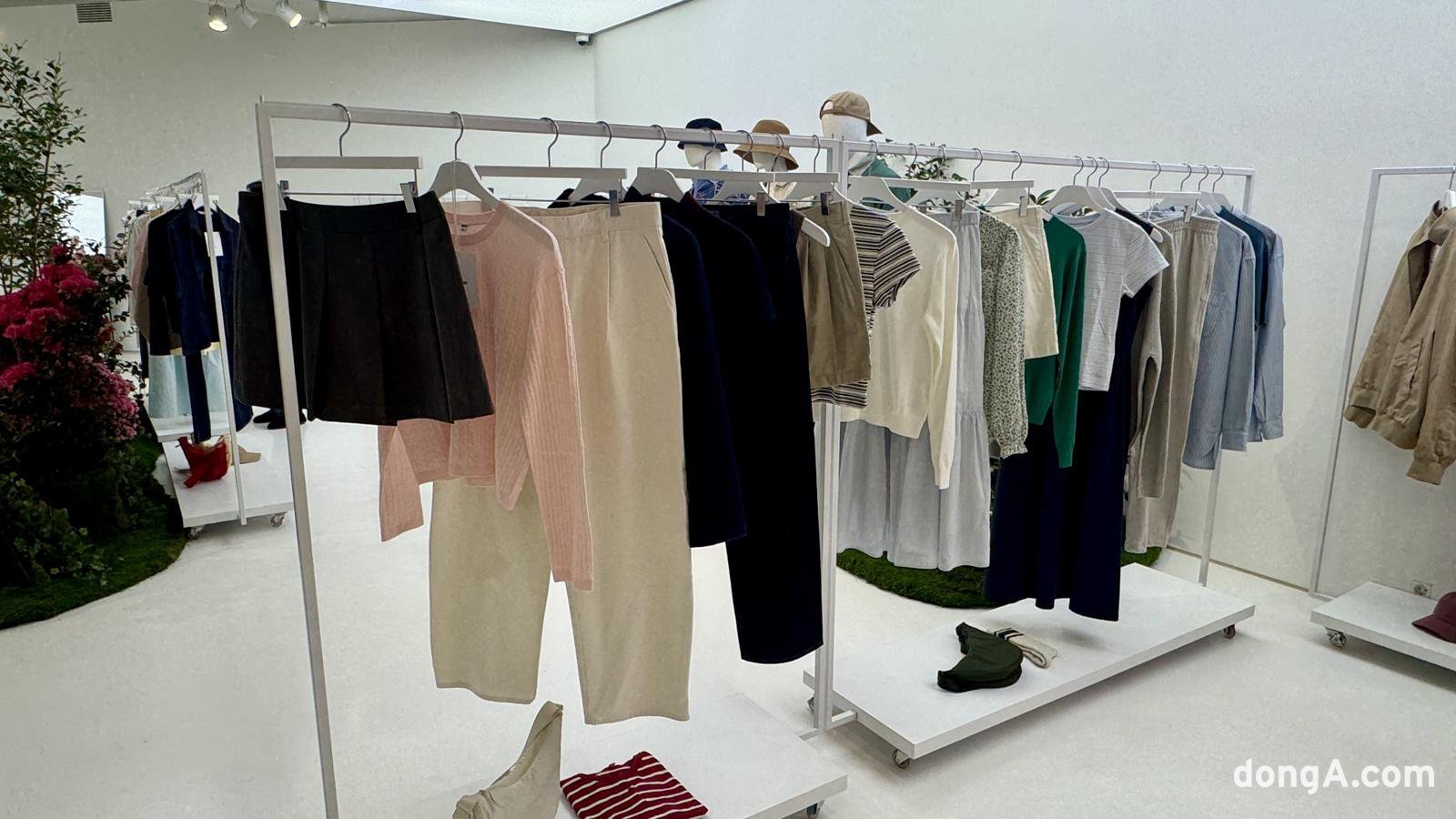 디자이너 협업 라인업도 한층 깊어졌다. ‘유니클로 : C 컬렉션’에서는 스카이 블루, 파우더 라일락 등 소프트한 컬러로 경쾌한 계절감을 선보였다. 여기에 선명한 레드 니트웨어를 추가해 대비감을 드러냈다. 아직 출시 일정이 정해지지 않은 ‘U 컬렉션’도 미리 만나볼 수 있었다. U 컬렉션의 주제는 ‘네오 코어’로, 라일락 퍼플을 중심으로 섀도 블루, 카놀리 크림, 딥 브라운 등의 색감이 조화를 이룬다.
