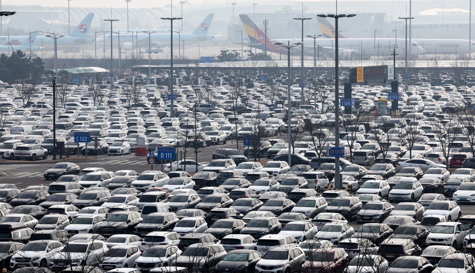 설 명절 연휴를 앞둔 12일 오전 인천국제공항 2터미널 장기주차장이 주차 차량으로 붐비고 있다. 최근 아시아나항공의 2터미널 이전과 설 연휴가 겹치면서 주차난이 예상되고 있다.2026.2.12. 뉴스1