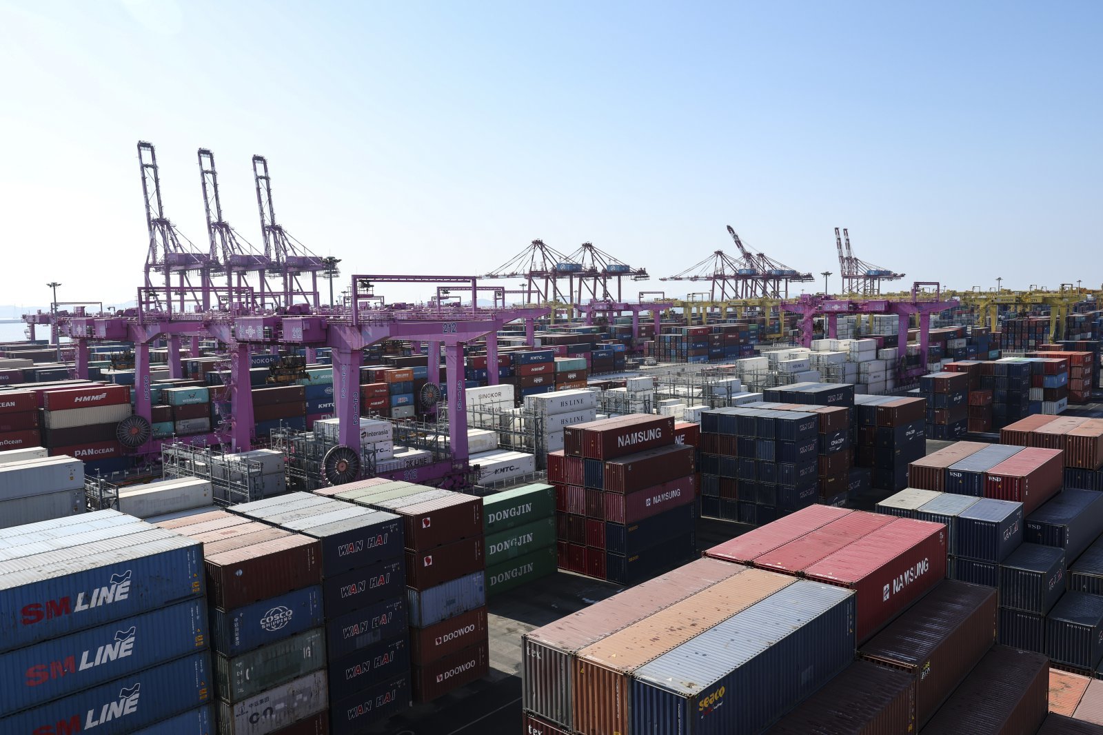 1일 오후 인천 연수구 인천신항 야적장에 컨테이너가 놓여 있다. 산업통상부가 발표한 ‘1월 수출입동향’에 따르면 수출은 1년 전보다 33.9% 증가한 658억5000만 달러(95조5484억원), 수입은 11.7% 증가한 571억1000만 달러(82조8666억원)을 기록한 것으로 집계됐다. 수출은 8개월 연속 플러스 흐름을 이어갔고 1월 수출은 역대 1월 중 1위를 달성했다. 특히, 반도체는 고대역폭메모리(HBM)와 더블데이터레이트(DDR)5 등 고부가 메모리 반도체 수요 견조로 인해 1월 중 최대 실적과 역대 2위 실적을 기록했다. 수출액은 전년동월대비 2배 이상 증가했다. 2025.02.01 뉴시스