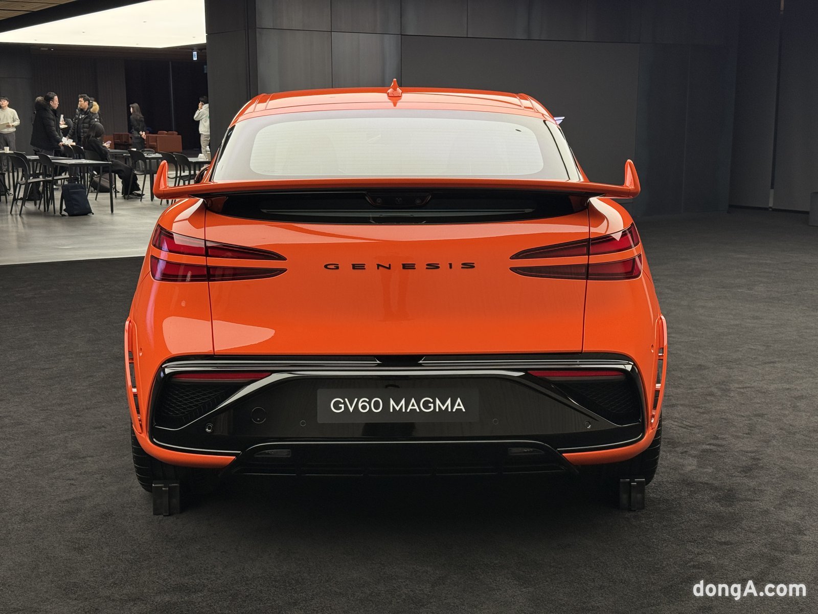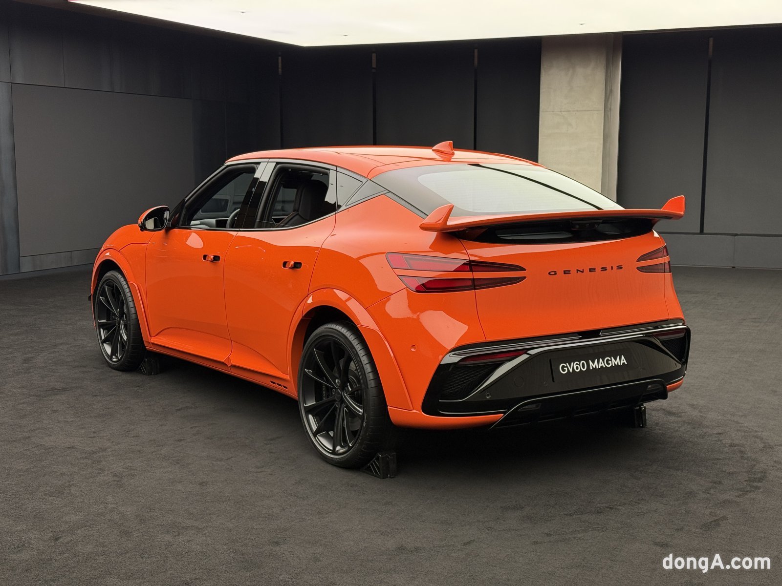 GV60 마그마의 차체 크기는 전장 4635mm, 전폭 1940mm, 전고 1560mm로, 표준 GV60보다 낮고 넓은 비율을 띤다. 이는 시각적으로도 낮은 무게 중심을 강조하며 안정감을 준다.