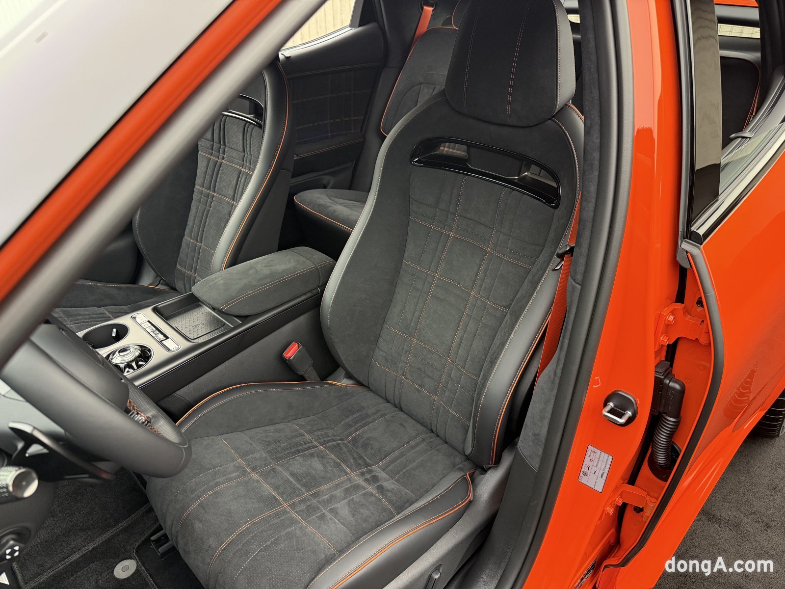 실내는 마그마 전용 색상 포인트와 고급 소재로 마감됐다. 운전석 버킷 시트는 스웨이드와 나파 가죽 조합으로 전동 조절이 가능하며, 몸을 딱 잡아주는 느낌이 인상적이다. 등받이 각도와 통풍·열선 기능도 편리했다. 스티어링휠은 가죽과 알칸타라 소재로 그립감이 좋았으며, 핸들 히터 기능도 포함됐다.