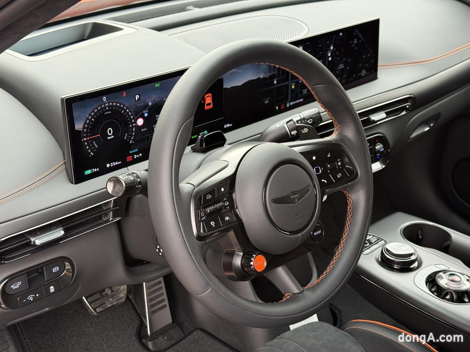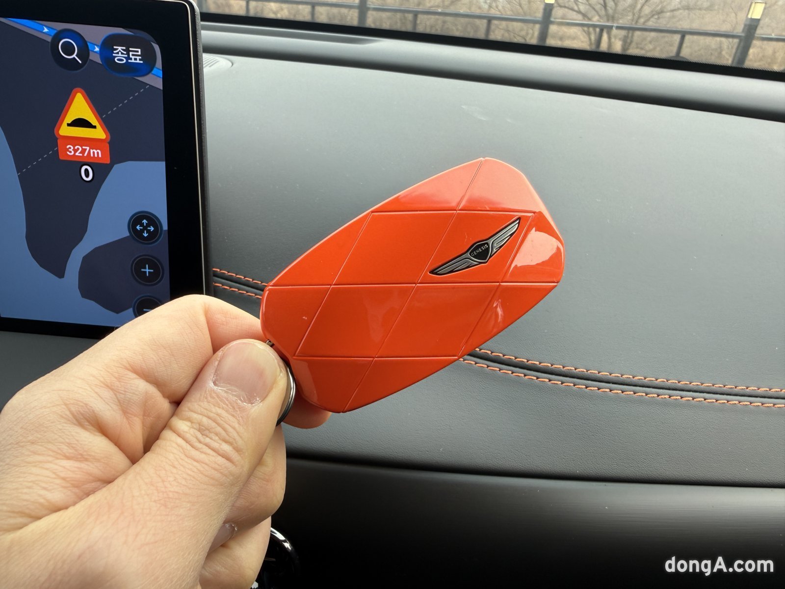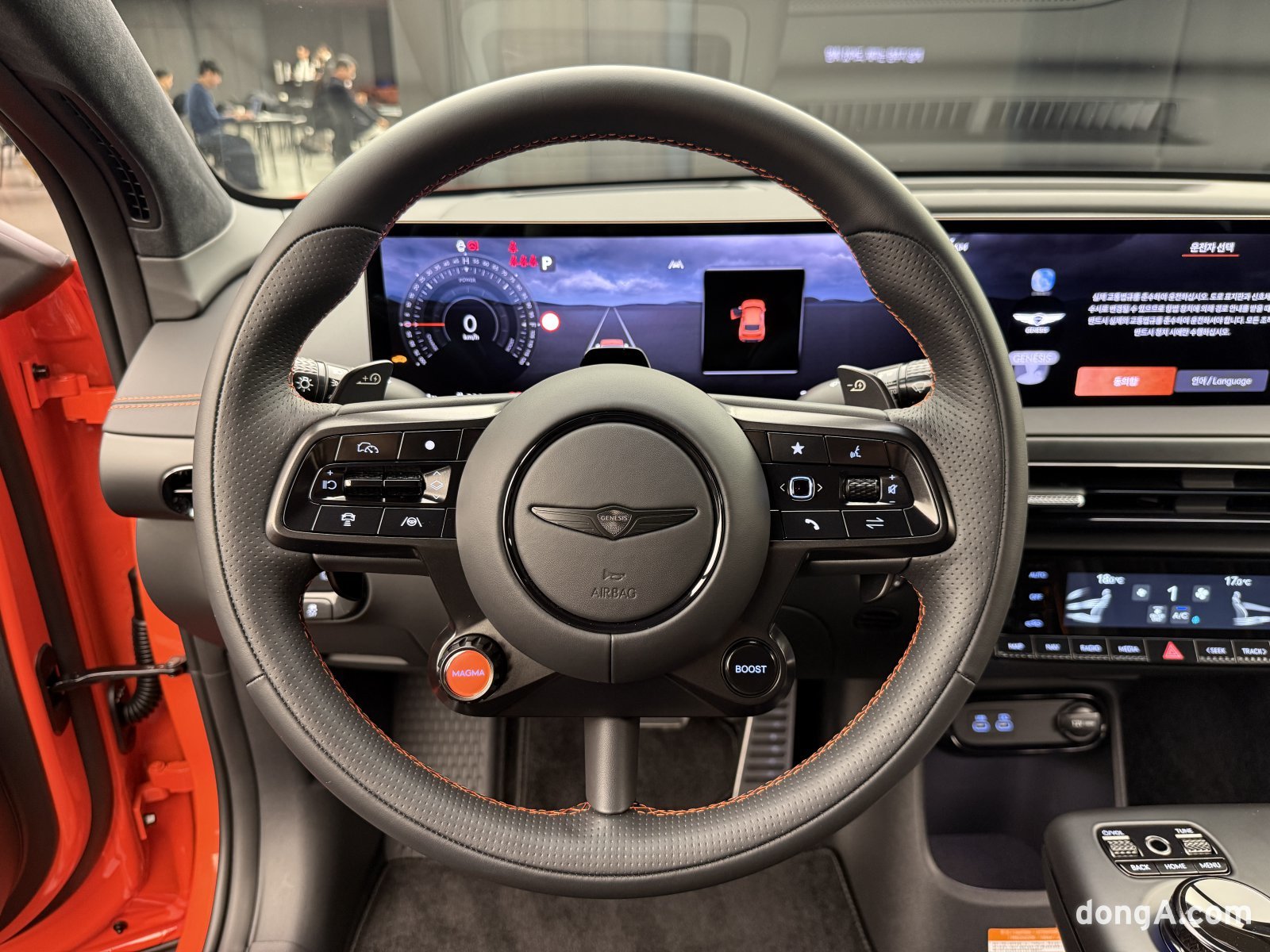 강렬한 오렌지색 차체는 존재감을 발휘했으며, 도로 위에서도 유별나게 튀어 보였다. 이번 시승은 용인 수지 제네시스 쇼룸에서 출발해 약 80km 코스를 포함한 고속도로, 국도, 와인딩 로드 등으로 구성됐다.