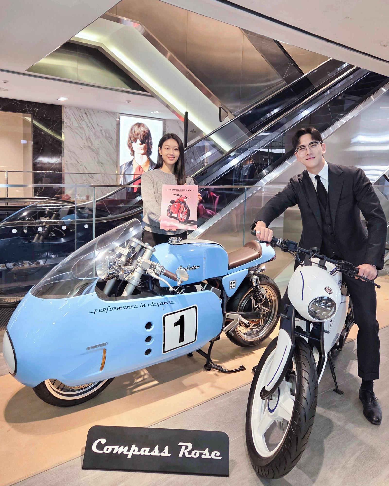 18일 서울 강남구 갤러리아백화점 명품관에서 모델들이 전기바이크 브랜드 ‘컴파스 로즈’를 소개하고 있다. 갤러리아백화점은 26일까지 컴파스 로즈 팝업을 선보일 계획이다.